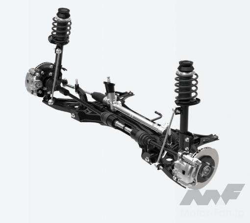 サスペンションは、フロントスタビライザーのレートを高めてロールを抑えつつ、リヤサスペンションのストローク量をアップ。またバンプストップラバーを長く、たわみやすくなるよう見直すことで、前席の突き上げ感を減少させた。