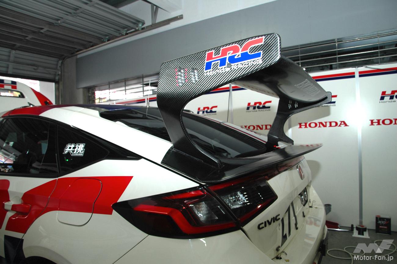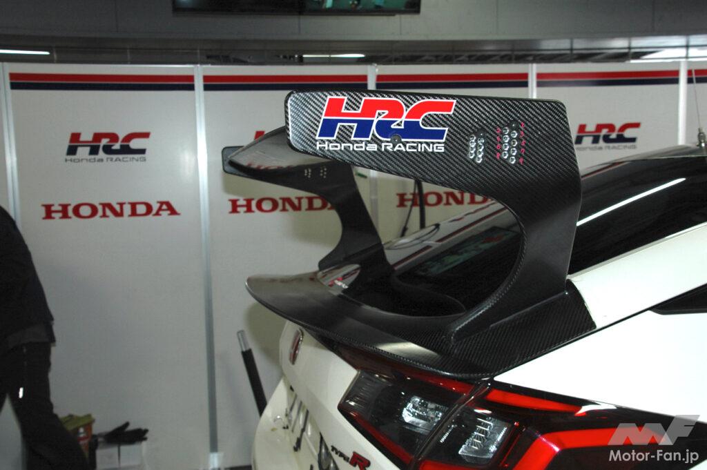 またテールゲートスポイラーは、巨大なリアウイングがダウンフォースと引き換えに増えたドラッグを低減させる効果があるという。そしてこの形状は、GT500のシビックにも通じるものだ。こうしたトップカテゴリーに用いられる技術とのつながり感や単純明快なカッコ良さも、HRCならではだと言えるだろう。