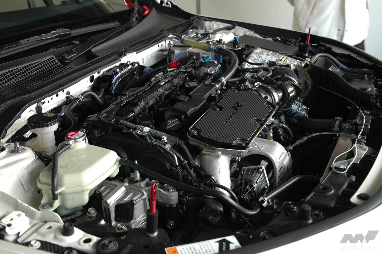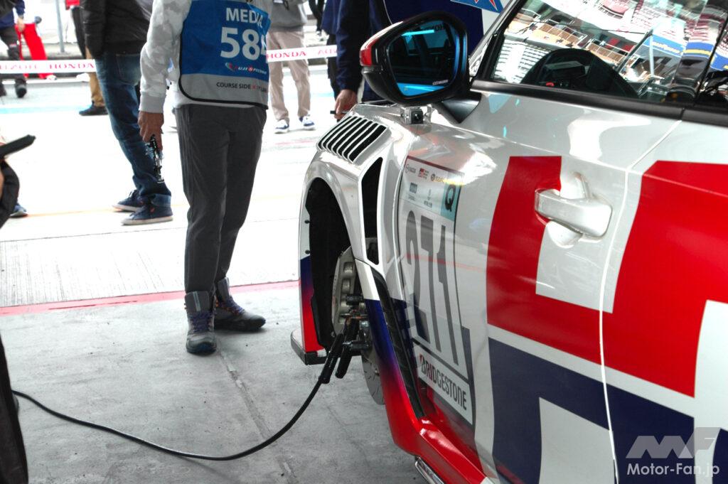 対してメーカーの開発力が物を言う空力パーツは、かなりこだわった。まず第6戦 岡山ラウンドに向けては、ドライカーボン製の大型テールゲートスポイラーを装着。またルーフパネルもカーボン製として軽量化(-6kg)と共に重心高を下げた。