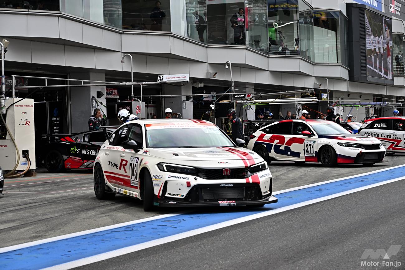 ちなみに2023年シーズンのS耐には、Team HRCが参戦するST-Qクラス(開発車両クラス)とは別に、ST-2クラスにも現行シビックタイプRが1台参戦している。シビック タイプRの開発責任者である柿沼秀樹氏が中心となり、ホンダ社内の有志によって2021年から活動を続ける♯743 Honda R&D Challengeだ。