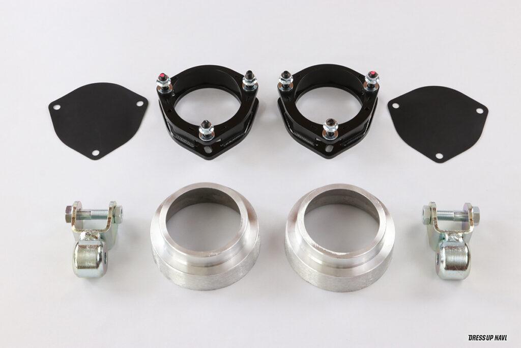 まずふらつき改善策として、スタビライザーキットの装着がオススメ。安定感が増し、高速道路を走る際の不安を解消できる。また直進安定性を向上させたいなら、リアショックの交換を提案したい。減衰力調整機構付きだから、積んでいる荷物の重さや走るシーンに合わせてセッティングできるのが魅力。アクスルブッシュの不快な挙動を抑制するアクスルリジッドプレートも導入すればさらに安定した走りを実現。そして今が旬のオフロードカスタムにマッチしたリフトアップキットも用意。前後の足まわりにスペーサーをかませて上げる手法だから乗り心地の影響が少ないのが嬉しい。手軽にアゲを楽しみたい人に最適だ。