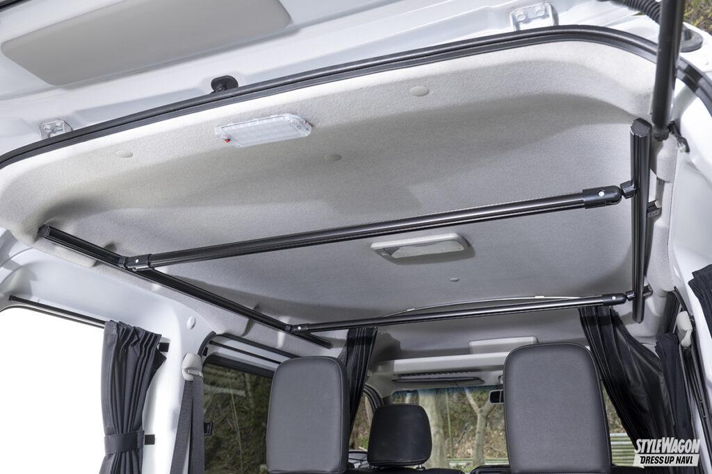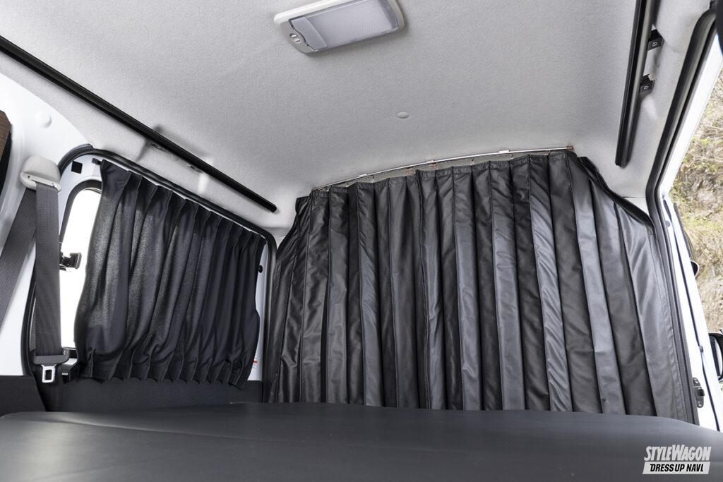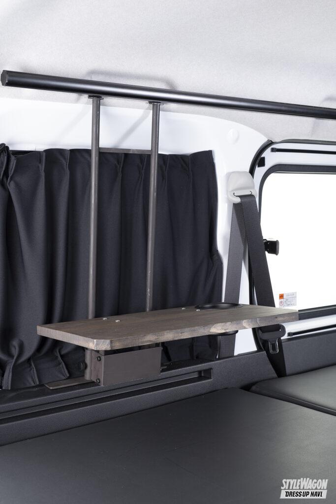 そしてシンケと言えば、車種専用フルフラットマットやベッドキット製作の経験を生かした、機能的な内装アイテムも要注目。寝心地が良いベッドキットはもちろん、ラックやスライドキャリアなど広い荷室空間を最大限に生かせるパーツも開発。車中泊から仕事までフルに使える。