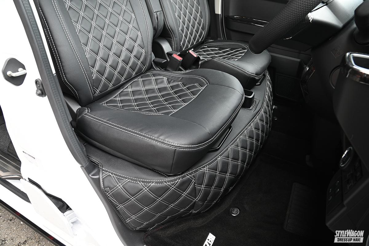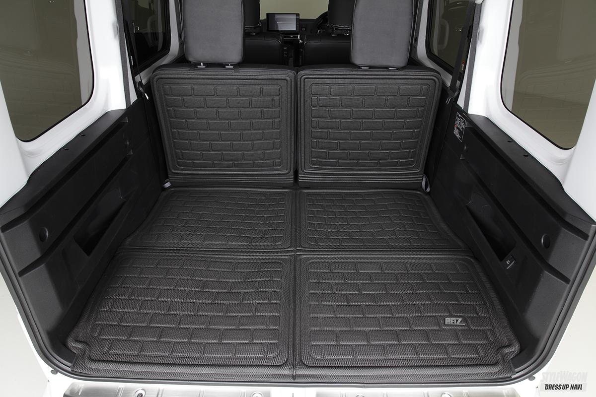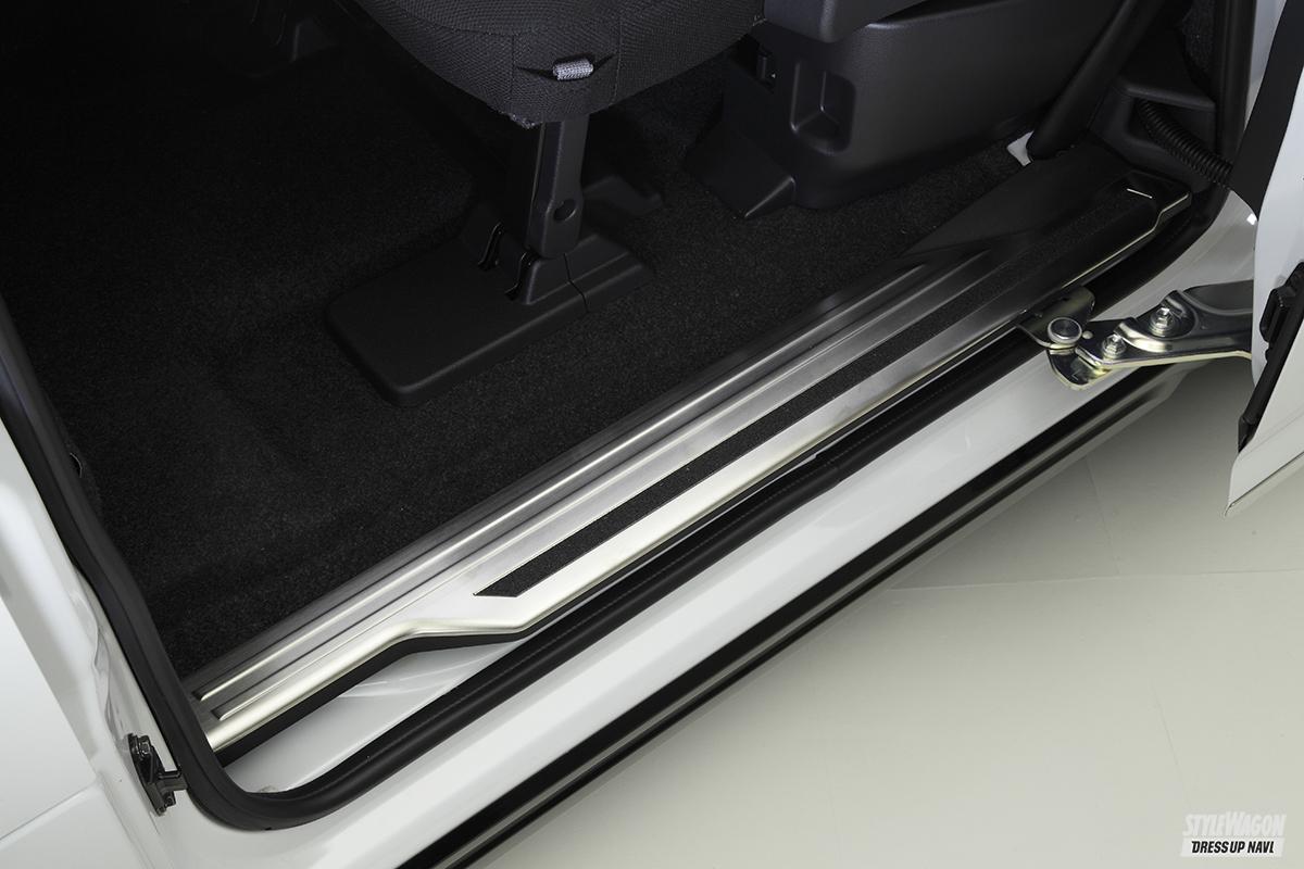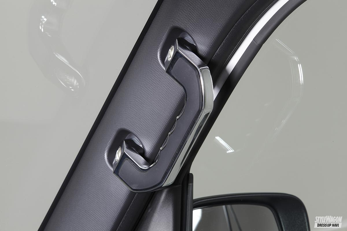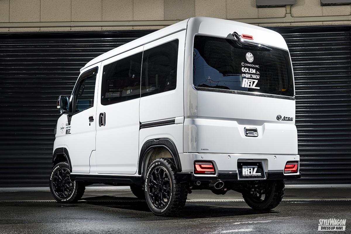 クルマ1台に対する専用パーツの豊富さがライツの強み。だから自社のパーツだけで内外装のトータルコーディネイトが可能となる。ひとつずつパーツを選んで進化を楽しむのも良いし、一気に取り付けてガラッと雰囲気を変えるのも良いだろう。アトレー&ハイゼットカーゴもすでに多くのパーツをラインアップしており、クルマを買ってこれからカスタマイズを始めたいユーザーの期待に応える。エクステリアに関しては、マフラーにも使われる高品質のSUS304素材を採用したステンレスパーツが豊富。基本的に両面テープで貼るだけだから誰でも簡単に施工でき、それでいて大きな見た目の変化を味わうことができる。フロントまわりはボトム部に装着するアンダーカバーやグリルカバー、サイドもドアハンドルカバーやドアミラーカバーなど多くのパーツを用意。リアまわりも抜かりなく、バックドアまわりを彩るパーツをメインに取り揃えている。今回のデモカーのようにちょっとオフロードに決めたいなら、出幅9mmのオーバーフェンダーがオススメ。フロントバンパーアンダーカバーはラギッドなデザインのタイプ2を合わせるのがベターだ。