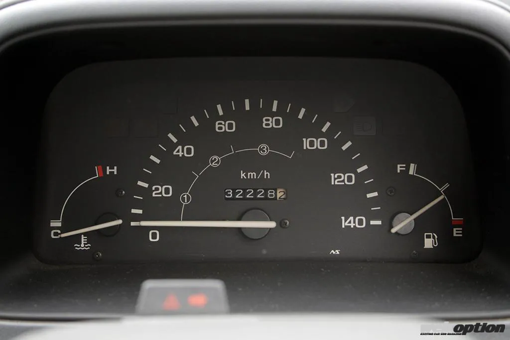取材車両は、角型異形2灯ヘッドライトでE05A型を載せた中期型。クルマ好きならPGM-Fi仕様のエンジンに5速MTが組み合わされ、タコメーターを標準装備したスポーツグレードのRi-ZやRiを真っ先に思い浮かべるのだろうが、それではあまりにも当たり前すぎて面白くない。そこで発掘したのが最底辺グレードのFというわけ。