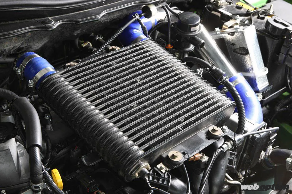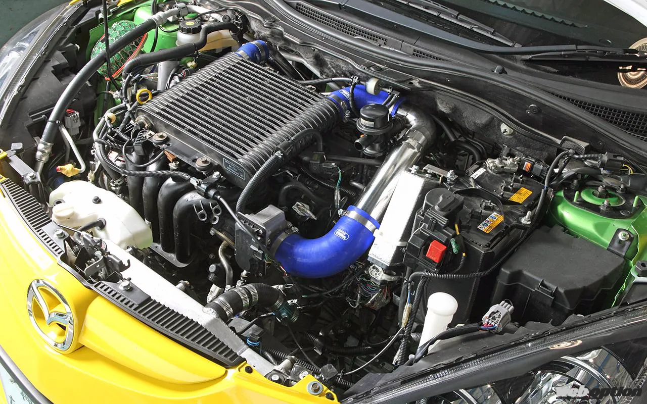 そこで「MAXパワーも低速トルクも欲しい」というユーザーの欲求に応えるべく、ハーフウェイが選んだのは“1.3L換装+ターボ化”だった。デミオスポルトに搭載されるZY-VEは1.5LのNAだから、いくらターボ化するとはいえ、チューニングのセオリーを無視したまさかの“小排気量化”が実施されたのである。