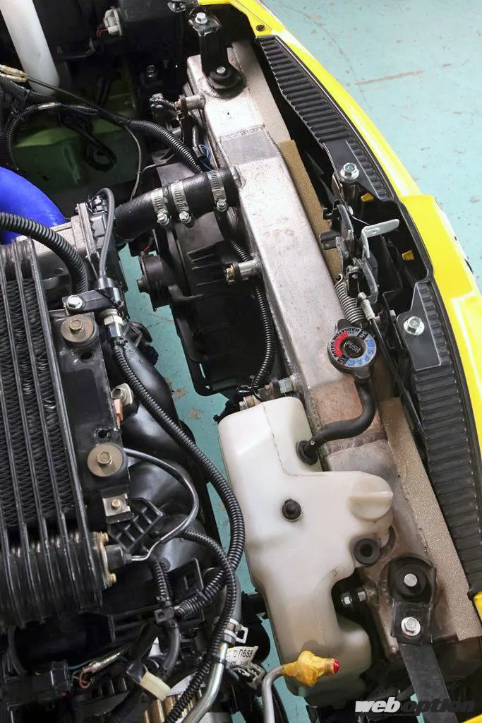 クーリングチューンも徹底。オイルクーラーを追加し、DC5用として製作した大型のラジエターもインストール。セントラルサーキットで開催された3時間耐久に出走してテストも行ったが、水温/油温ともに終始安定していた。
