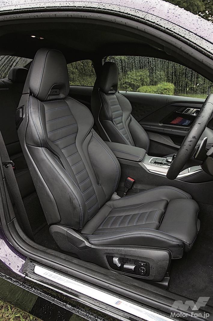 4人乗りの車内空間も4シリーズとの共通性が見て取れる一方で、ロゴが光るドアトリムのような新しい試みも見られる。エンジンフィールはBMWの直6としての期待にしっかり応えていて申し分ない。0-100㎞/h加速は4.3秒というとおり、体感的にもなかなかの速さだ。サイズの拡大や車両重量の増加の影響で、従来のF22型で味わえたような手の内で操れる感覚が薄れたのは否めないが、もはや4シリーズと大差ないほどの車格感を身につけている。