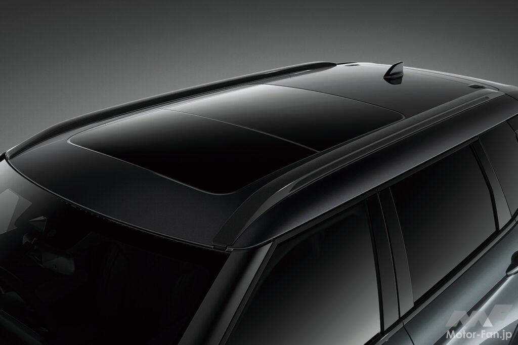 特別仕様車「ブラックエディション」は、ベースグレードを「G」から「P」に変更することで、ヘッドアップディスプレイやBOSEプレミアムサウンドシステムなど装備の充実を図るとともに、電動パノラマサンルーフを特別装備するなど、機能性・快適性をさらに向上させた。