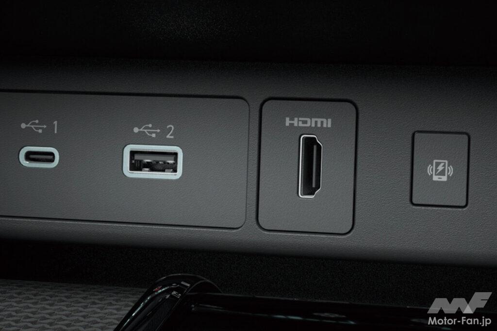 アウトランダーは、従来のUSB タイプCとタイプAに加えて、要望の多かったHDMIポートを全グレードに標準装備。スマートフォンやタブレットなどの画面をスマートフォン連携ナビゲーションに出力することで、急速充電中や家族の送り迎えなど車内での待ち時間に動画等を気軽に楽しめるようになった。