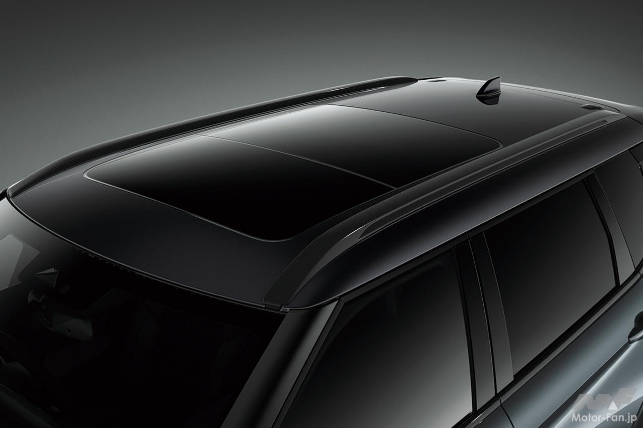 特別仕様車「ブラックエディション」は、ベースグレードを「G」から「P」に変更することで、ヘッドアップディスプレイやBOSEプレミアムサウンドシステムなど装備の充実を図るとともに、電動パノラマサンルーフを特別装備するなど、機能性・快適性をさらに向上させた。