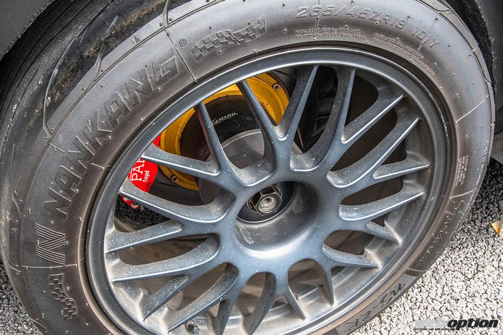 そしてホイールは泣く子も黙るセンターロック仕様!さすがに本物というわけにはかないが、インパルがかつて販売していた第二世代GT-R用の“M20”をオークションで落札。このホイールは、ハブをセンターロック化するアダプターもセットで販売されていた激レアモデルだ。
