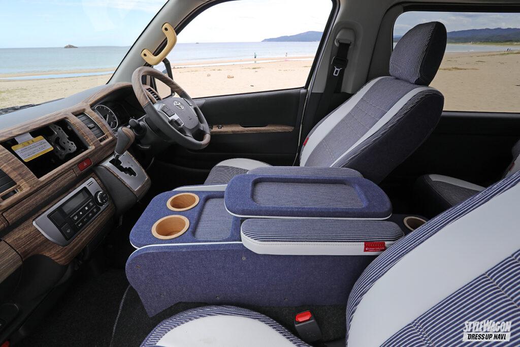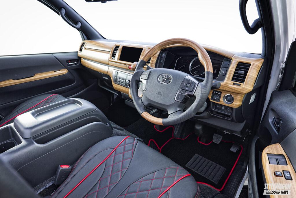 もちろんインテリアを飾るアイテムたちも200系ハイエースにはたっぷりとラインアップされている。腰痛対策としても有効なバケットシートや高級感たっぷりなシートカバー、オシャレなインパネにシフトノブなどどれを使うかは選びたい放題。自分が最も長い時間ふれあうインテリアだからこそ、ここにこだわるのもお忘れなく。