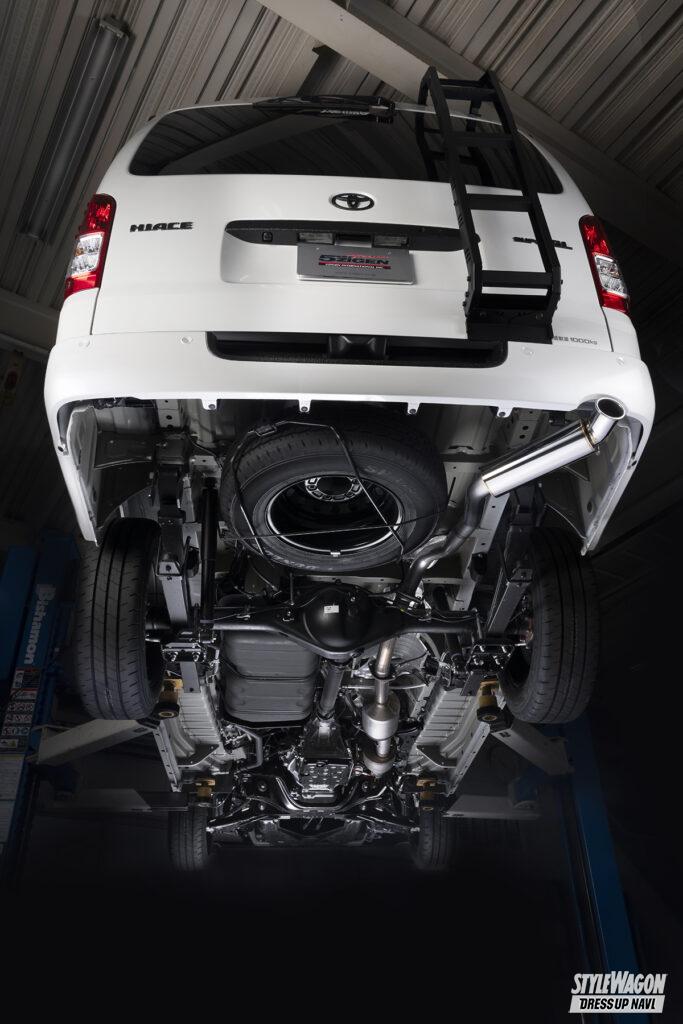 ハイエースは商用車だから…なんていうハナシは昔のことで。今では走りを快適化&強化できるさまざまなパーツもラインアップされている。乗り心地を改善することができるモーションコントロールビームやバンプストッパーは日常使いにも効果的で、走りとサウンドを両立したエキゾーストは優越感アップにも最適。パワーが欲しいならコンプレッサーもアリだ。