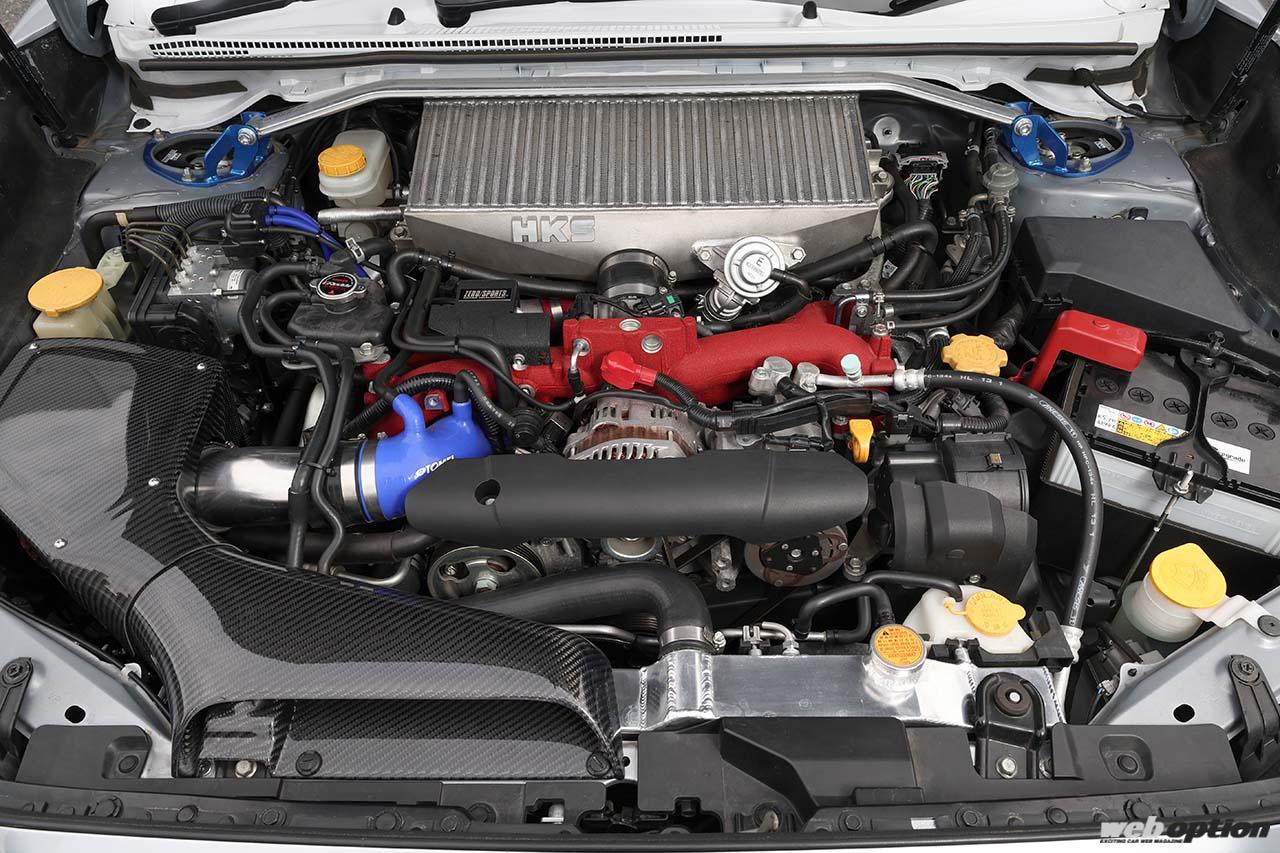 水平対向2.0LターボエンジンとAWDを武器に、初代のGC型からラリー競技を中心に、モータースポーツで活躍してきたインプレッサWRX。WRX STIへの車名変更後も、EJ20とAWDのパッケージングに拘り続けてきた。ここで紹介するのは“カンサイサービス”の鈴鹿走行会に参加していた熊澤さんのVABだ。