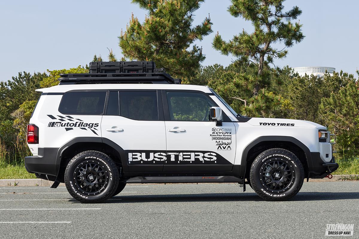 車種別専用設計ならではのスタイリッシュなフィット感で高い人気を誇るオートフラッグスの「バスターズ」ルーフラックシリーズに、ランドクルーザー250/300用のラインアップが加わり、正式リリースを開始。デリカD:5、RAV4用など既存モデルでも定評を得て来たベース車のフォルムとのバランスの取れた絶妙なサイズ感をはじめ、数々の美点を継承した注目モデルだ。