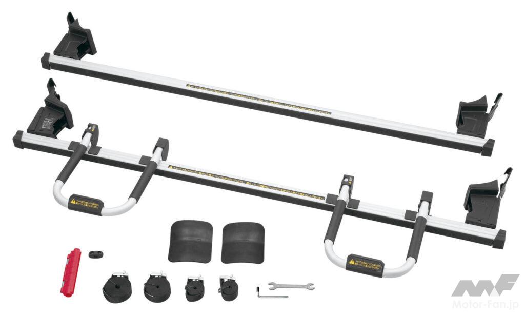 3~5尺までの脚立やハシゴを楽に積み下ろしできる設計で、積載している場合もナンバープレートや灯火類が認識できるよう考慮されている。装着したままでの車検も可能となっている。最大積載量は20kg(片側10kg)。