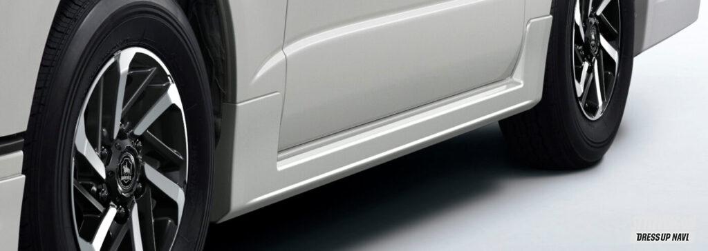 サイドスカートは既存品を継続するが、リアはフロントと同様、刷新。スクエアな立体デザインを意識しつつ、スポイラー内に滞留するエアを排出させるダクトをインと、走行時のパフォーマンス性を上げる施策が盛り込まれている。