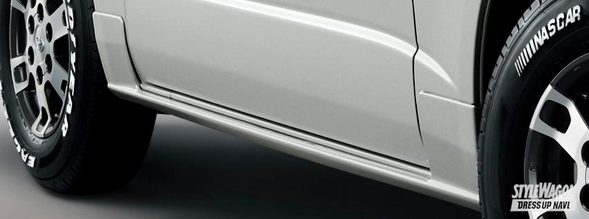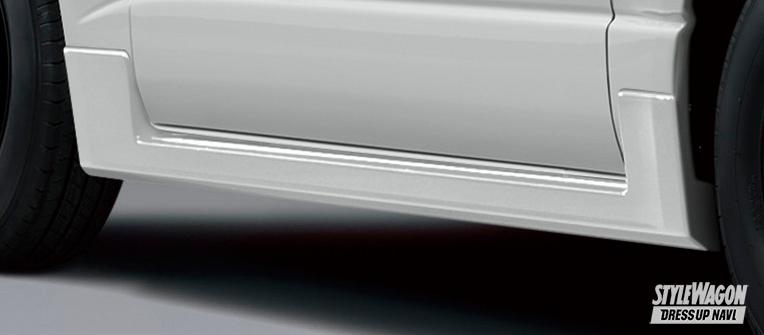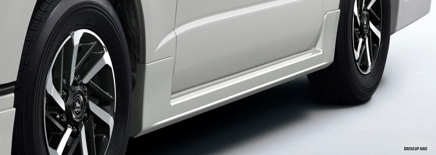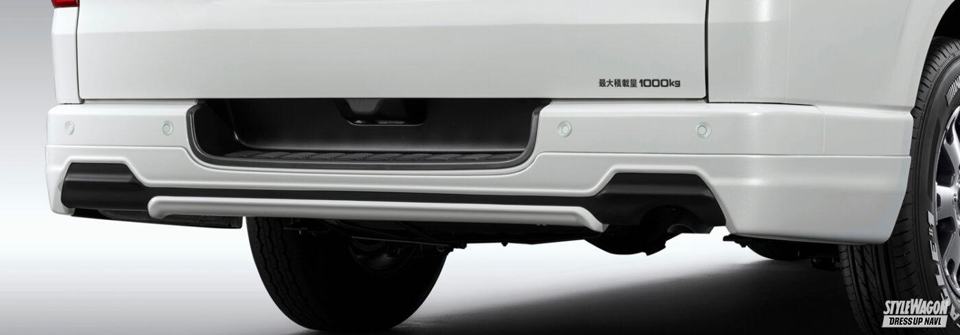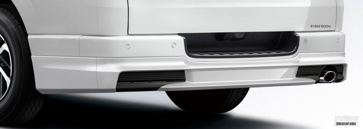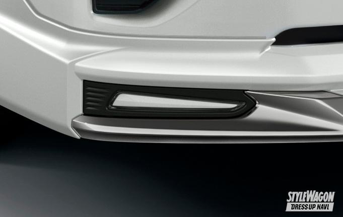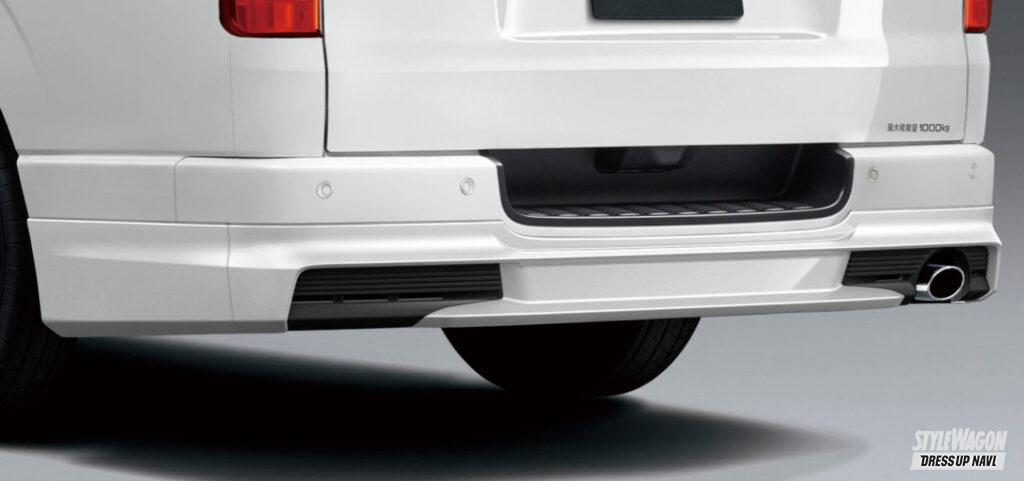 サイドスカートは既存品を継続するが、リアはフロントと同様、刷新。スクエアな立体デザインを意識しつつ、スポイラー内に滞留するエアを排出させるダクトをインと、走行時のパフォーマンス性を上げる施策が盛り込まれている。