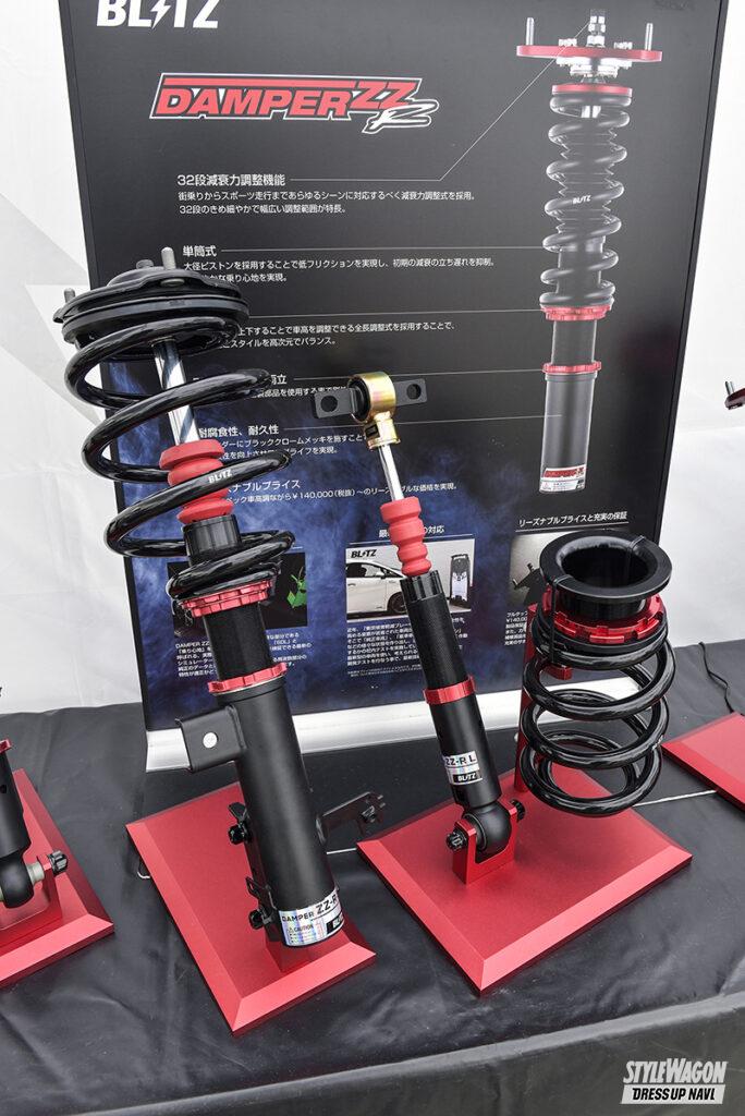 多くの来場者でにぎわっていたのがブリッツブース。デモカーは今年の東京オートサロンで発表されたレクサスLBX・モリゾウRRを展示。今後は薄型フラップタイプのエアロパーツや低さと乗り味を両立したダンパーZZ-R、左右出しマフラーのニュルスペックカスタムエディションなど様々な専用パーツを開発していくとのこと。それ以外にもレーダー探知機・タッチレーザーシリーズやスポーティなステアリングなど、話題のアイテムも数多くディスプレイしていた。