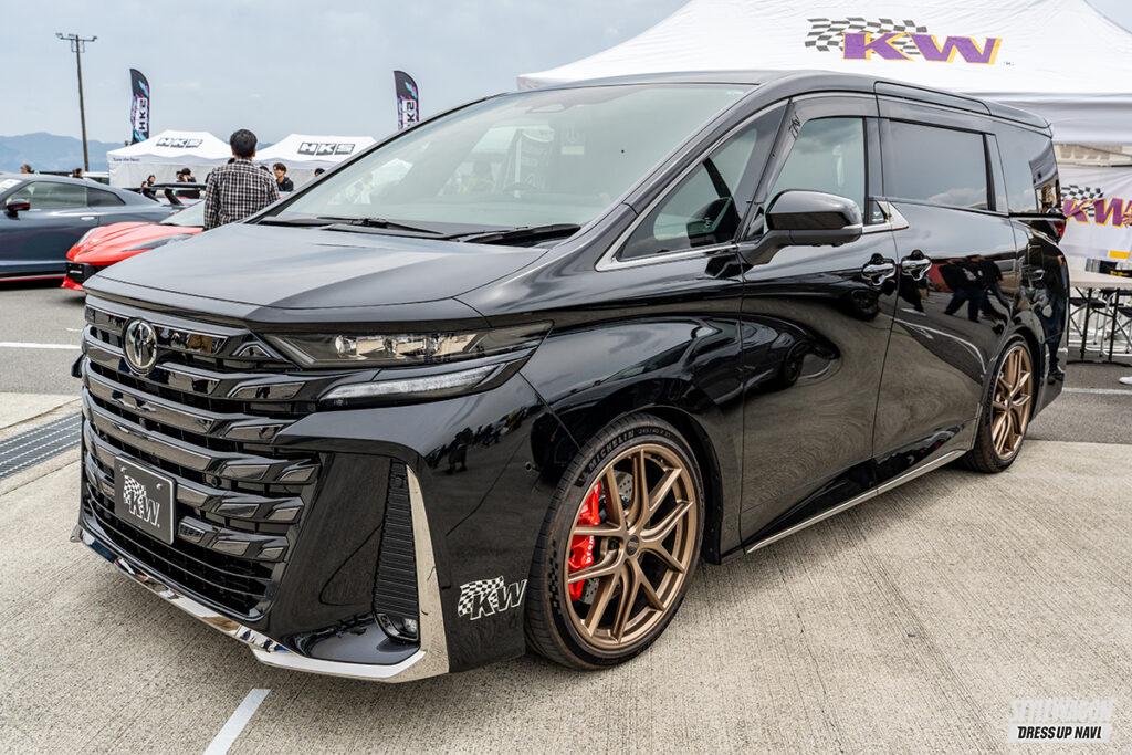 KWジャパンブースには試乗も可能な40ヴェルファイアのデモカーを展示。V3ダンパーにBBSアンリミテッドホイール、ブレンボキャリパーをセットし、乗り心地をチェックすることができた。注目はハイエース用のV3レベリングで、純正車高のままで乗り心地を考慮しつつもスポーツも両立させる。高速走行やワインディング、低速、空荷、荷物を積んでいても、ダンパーの懐が大きいので乗っていて楽で疲れないという究極の乗り心地を提供してくれる。