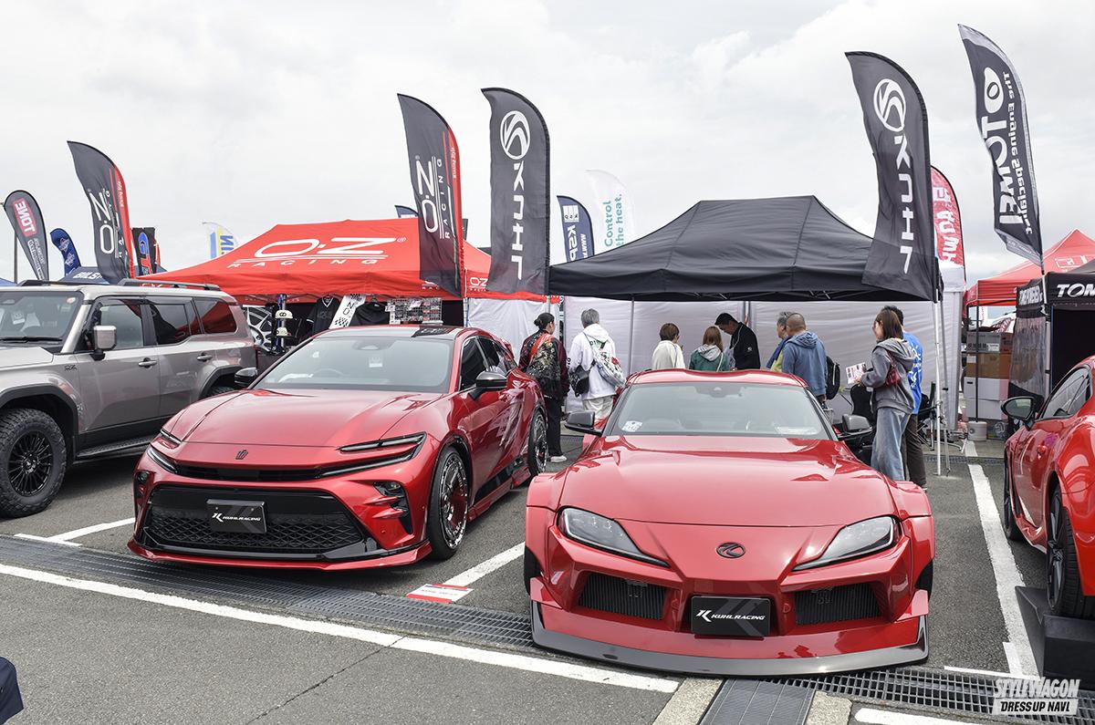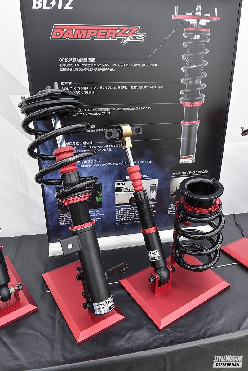 多くの来場者でにぎわっていたのがブリッツブース。デモカーは今年の東京オートサロンで発表されたレクサスLBX・モリゾウRRを展示。今後は薄型フラップタイプのエアロパーツや低さと乗り味を両立したダンパーZZ-R、左右出しマフラーのニュルスペックカスタムエディションなど様々な専用パーツを開発していくとのこと。それ以外にもレーダー探知機・タッチレーザーシリーズやスポーティなステアリングなど、話題のアイテムも数多くディスプレイしていた。
