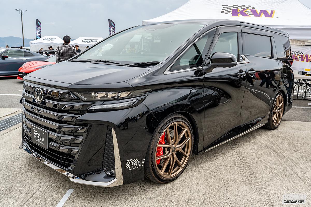 KWジャパンブースには試乗も可能な40ヴェルファイアのデモカーを展示。V3ダンパーにBBSアンリミテッドホイール、ブレンボキャリパーをセットし、乗り心地をチェックすることができた。注目はハイエース用のV3レベリングで、純正車高のままで乗り心地を考慮しつつもスポーツも両立させる。高速走行やワインディング、低速、空荷、荷物を積んでいても、ダンパーの懐が大きいので乗っていて楽で疲れないという究極の乗り心地を提供してくれる。