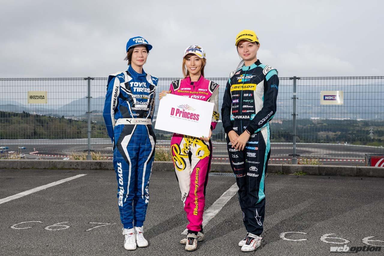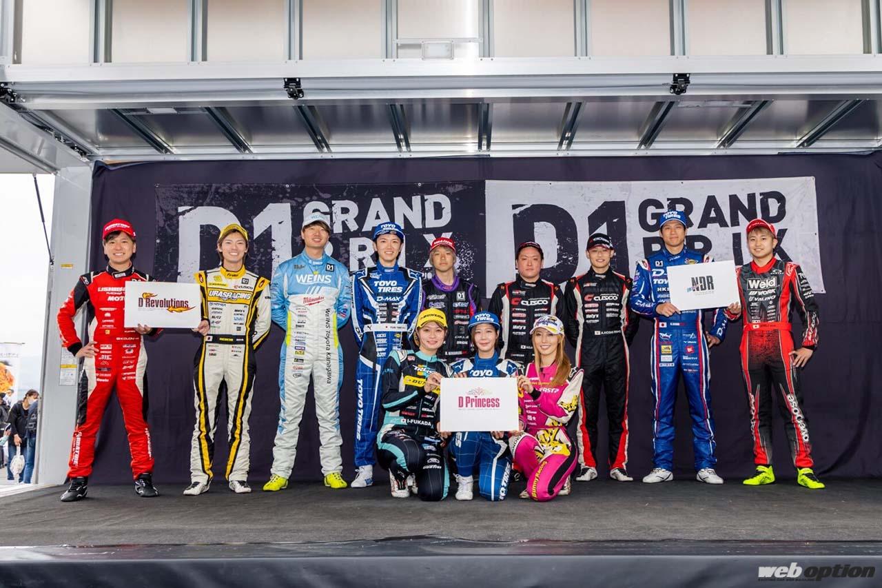 一日の最後は、D1ステージにてユニット名の発表。今年、D1やドリフト界をさらに盛り上げるべく、D1GP、D1 Lightsのドライバーによるユニットが3組結成されたのですが、その中の女子チームに私も参加させていただくことになったんです。が、まだ活動内容は未定!? これから色々と発表されていくと思うので、楽しみにしていてください。