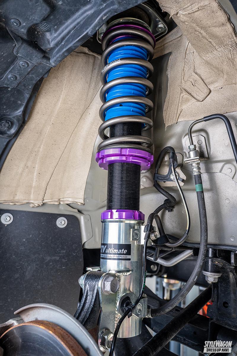 純正では全般的にスズキの方がフィーリングが固めなんですよ。それは自動車メーカーとしての思想だと思うんですけどね。アトレーのようなダイハツ系の方が柔らかめです。だから純正で比べるとソフトな感じがする。そういった足の違いがベースにあって、かつ、ハイゼットカーゴ&アトレーはスタビライザーがない。これがもう圧倒的な違いですね。