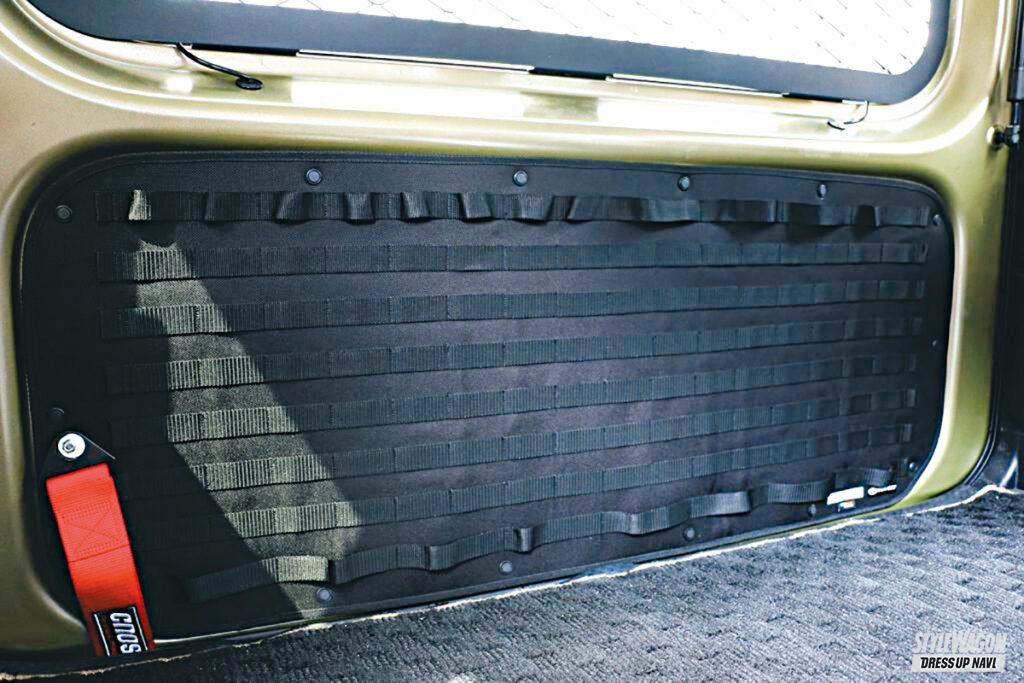 チューニングでおなじみのテイクオフだが、アトレー&ハイゼットカーゴにも力を入れている。特にキャンプなどのアウトドアに最適な収納アイテムが満載。ポイントとしてはリアクォーターガラスやリアガラス、リアゲートといった純正部品の形状に合わせて作られていること。だから汎用品とは違い、自然なフィット感を実現。