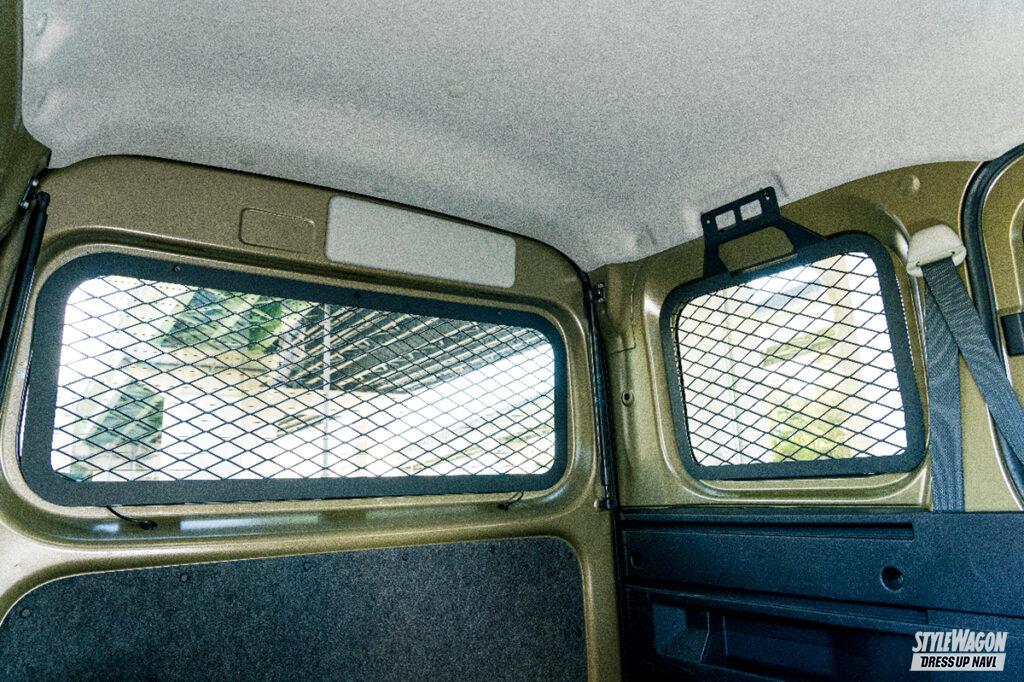 チューニングでおなじみのテイクオフだが、アトレー&ハイゼットカーゴにも力を入れている。特にキャンプなどのアウトドアに最適な収納アイテムが満載。ポイントとしてはリアクォーターガラスやリアガラス、リアゲートといった純正部品の形状に合わせて作られていること。だから汎用品とは違い、自然なフィット感を実現。