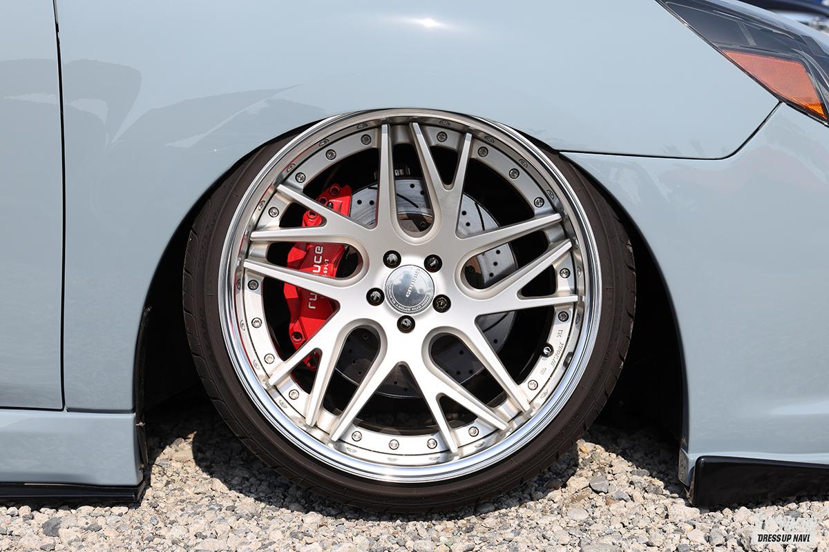 WHEEL●ワーク・グノーシス CVX(19×10.0J+10) TIRE●(225/35) EXTERIOR●F=リベラル、S=純正オプション、R=K2ギア、ヘッドライト/テール=クリスタルアイ TUNING●エアサス=ボルドワールド、マフラー=カキモト、ブレーキ=F ランデュース/R APレーシング、アーム類=スキッドレーシング AUDIO●ヘッドユニット/スピーカー=カロッツェリア、ウーファー=ロックフォード、アンプ=アルパイン