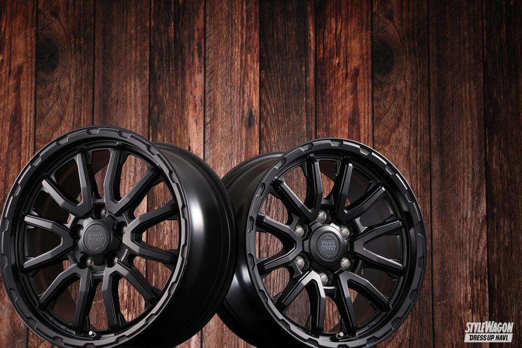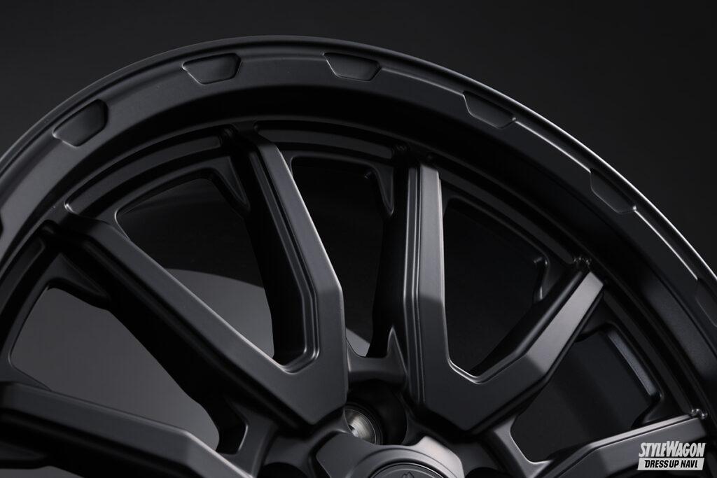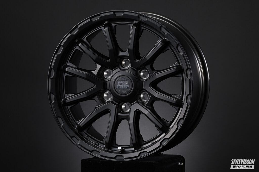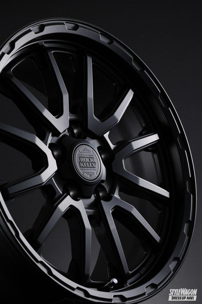 BADXのロックケリーは、これまで多くのオフ系ホイールを生み出してきた人気ブランド。新たに登場したMX-Hも間違いなく支持されるモデルとなるだろう魅力を持った新作だ。ベースとなるデザインは、V字ラインがリムへと広がる6×2スポーク(ジムニー用は5×2スポーク)。スポークの中間でハッキリとしたプレスラインを設けて折れ曲がることで力強さを表現。リムとの接合部ではスポークの最奥部に広がりを作ることでオフ系らしい安定感のあるデザインとしている。リムにあしらった凹凸のデザインや、ギリギリまで攻め込んだディープリム、存在感溢れるセンターオーナメントもタフさの表現のひとつだ。