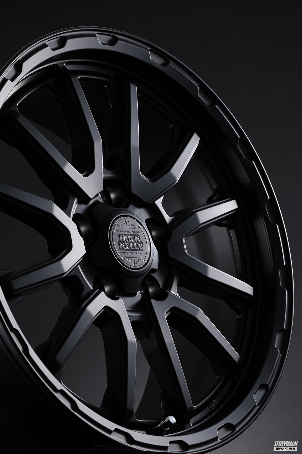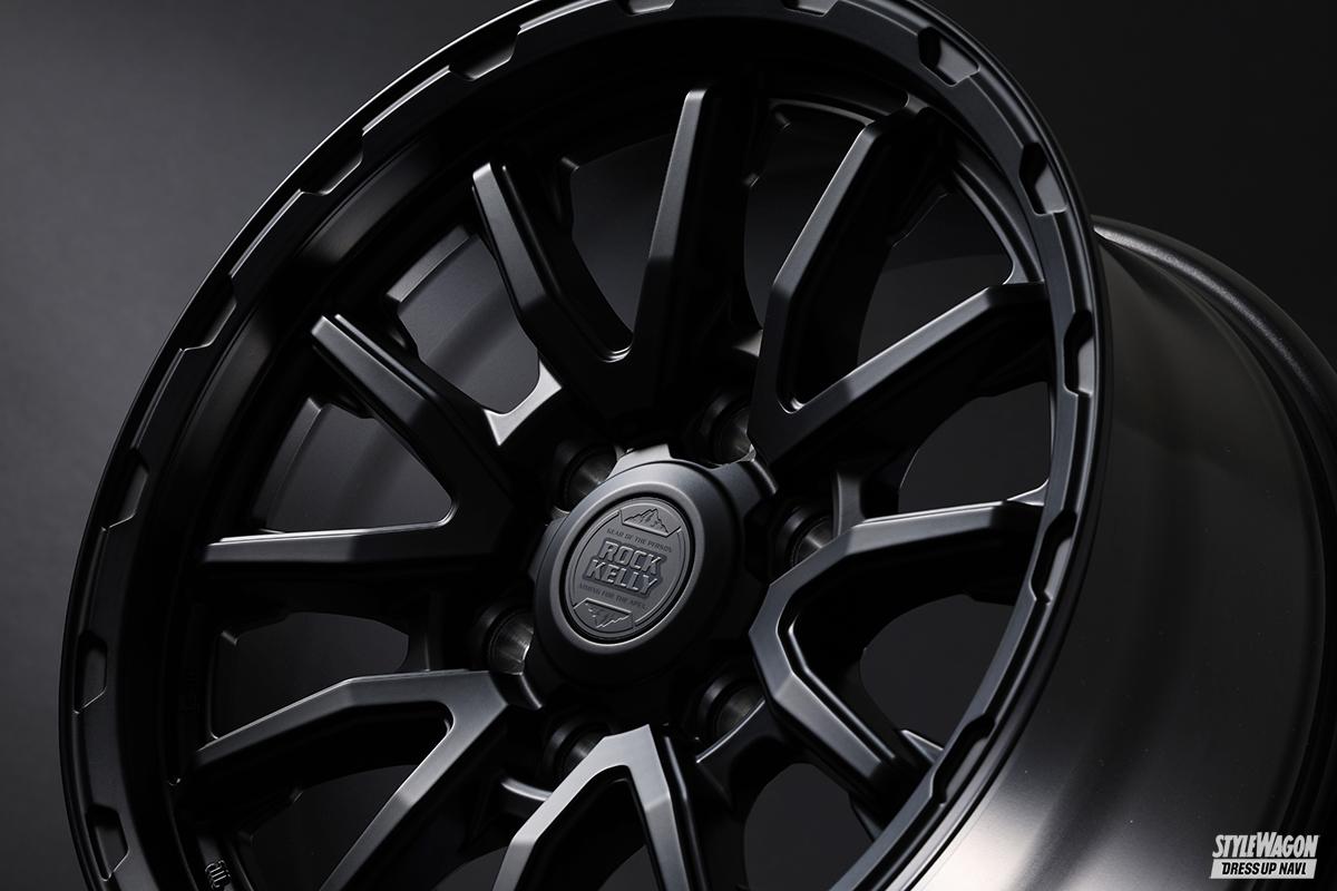 BADXのロックケリーは、これまで多くのオフ系ホイールを生み出してきた人気ブランド。新たに登場したMX-Hも間違いなく支持されるモデルとなるだろう魅力を持った新作だ。ベースとなるデザインは、V字ラインがリムへと広がる6×2スポーク(ジムニー用は5×2スポーク)。スポークの中間でハッキリとしたプレスラインを設けて折れ曲がることで力強さを表現。リムとの接合部ではスポークの最奥部に広がりを作ることでオフ系らしい安定感のあるデザインとしている。リムにあしらった凹凸のデザインや、ギリギリまで攻め込んだディープリム、存在感溢れるセンターオーナメントもタフさの表現のひとつだ。