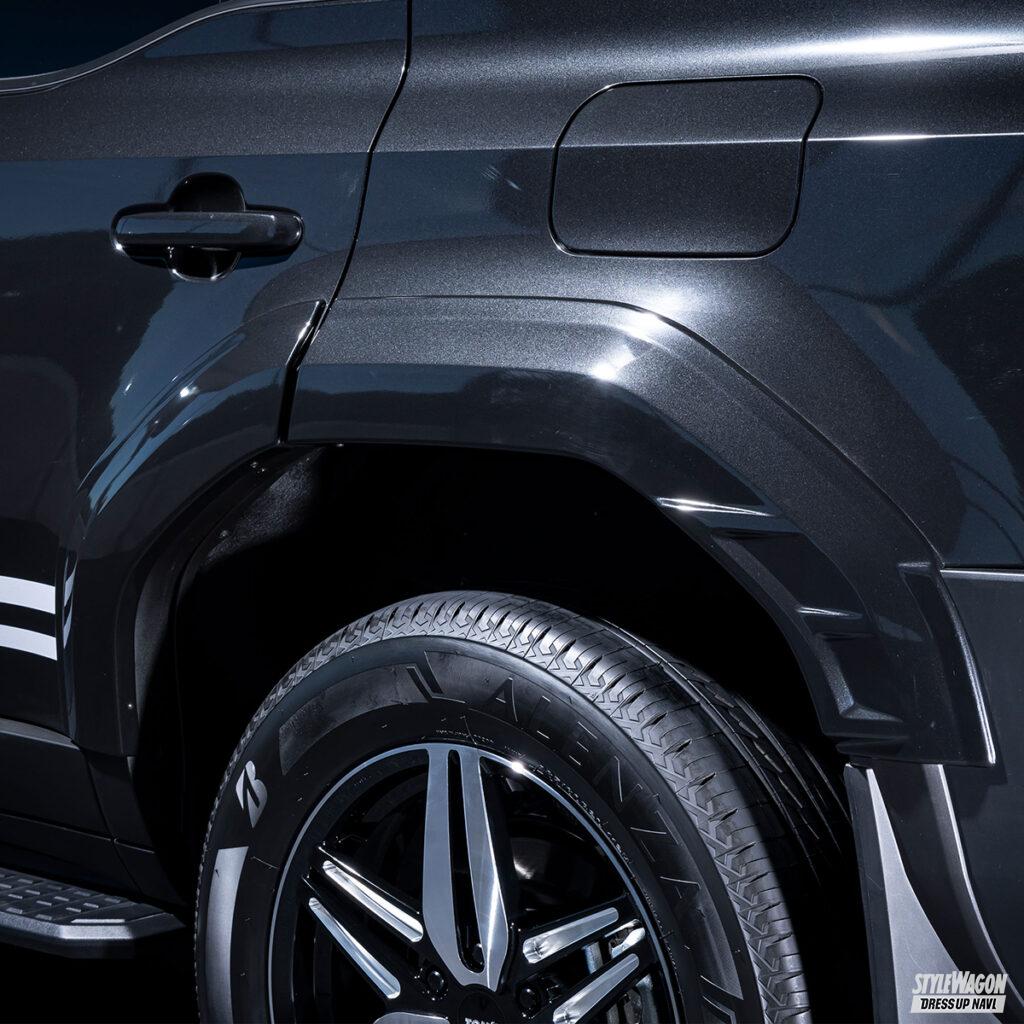 ベース車の持つ本格的なオフロード性能&圧倒的存在感と、洗練された都市生活とを巧みに融合! SUVらしさを消すことなく、アーバンなテイストを追加したワケだ。用意されたパーツはフロントまわり2点とフェンダーのみと、実は多くない。少ない手数で〝タフ+エレガント〟を表現したのだ。さながら欧州高級SUVかのよう……。そう、ゴリゴリのオフスタイルではなく、もっとオシャレに、もっとエレガントに。そんな仕上げを狙うオーナーに、とくにフォーカスの合うアイテムなのである。
