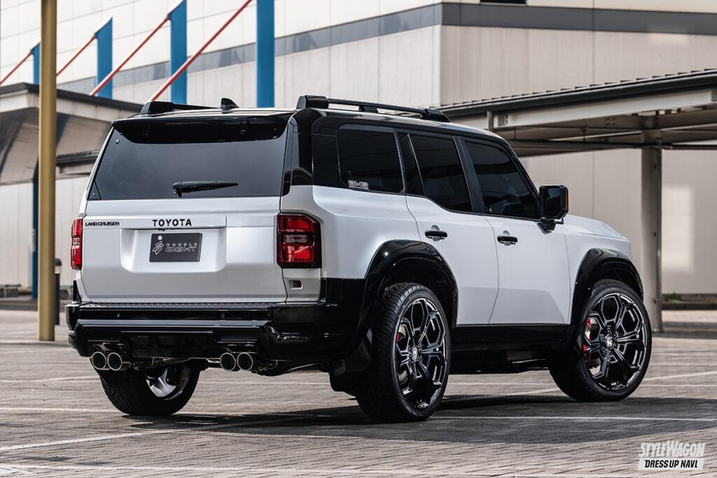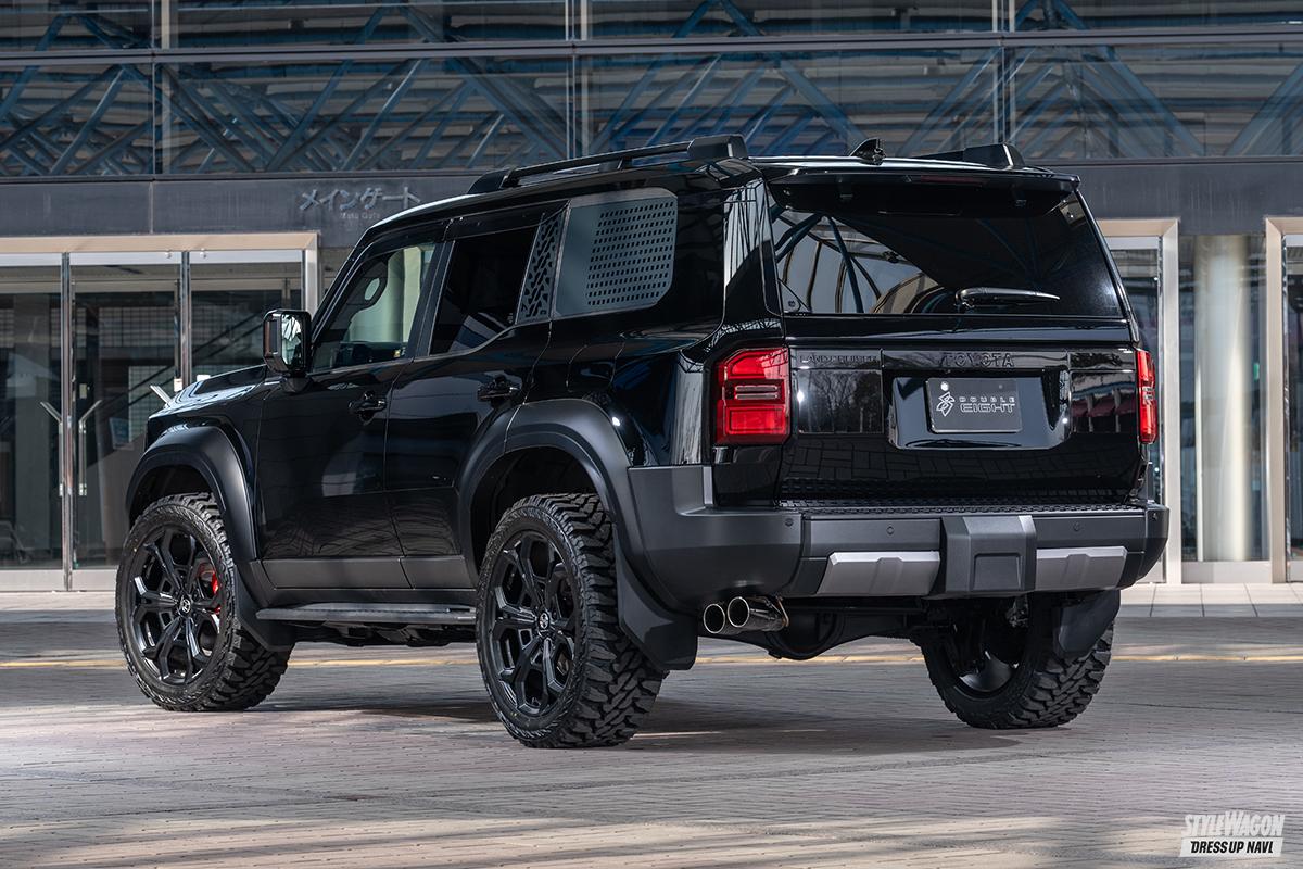 四駆&SUVパーツブランド、ダブルエイトが手がけるランクル250用プログラムは、純正デザインと調和し、物足りなさを解消する逸品が揃う。ひとつひとつのパーツは、独立して装着できる設計となっているため、トータルメイクはもちろんのこと、部分的に取り入れたり、他社製パーツと組み合わせたりと、コーディネイトは自由自在。アゲとサゲ、異なるコンセプトで仕上げた2台のデモカーを見てわかる通り、どんなスタイルにも絶妙にマッチ。自分だけのカスタムを楽しめるボディキットとなっている。
