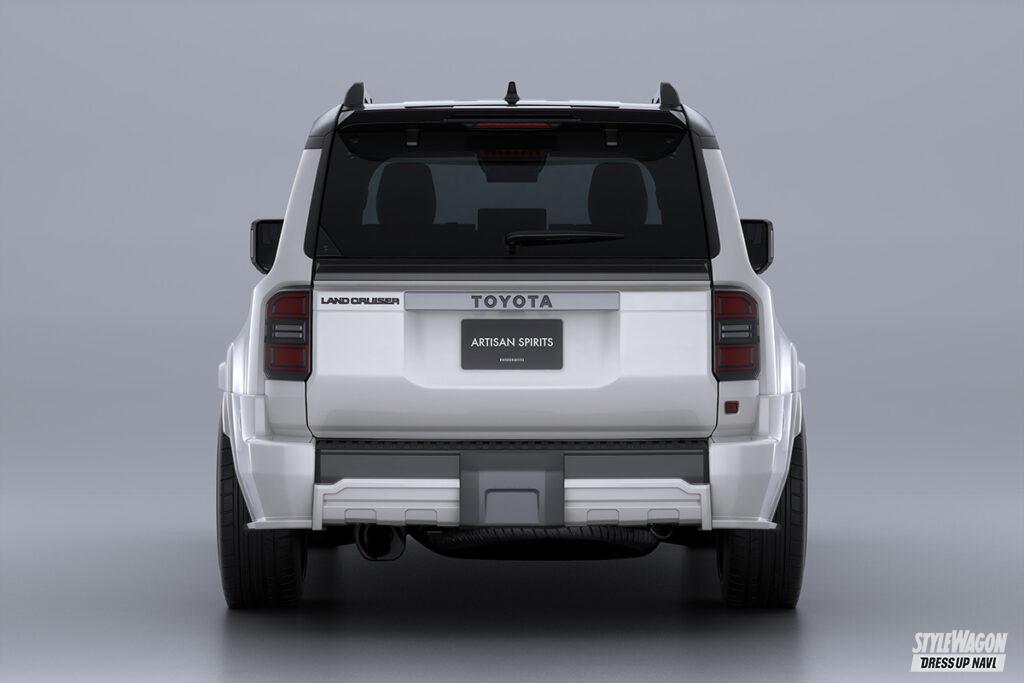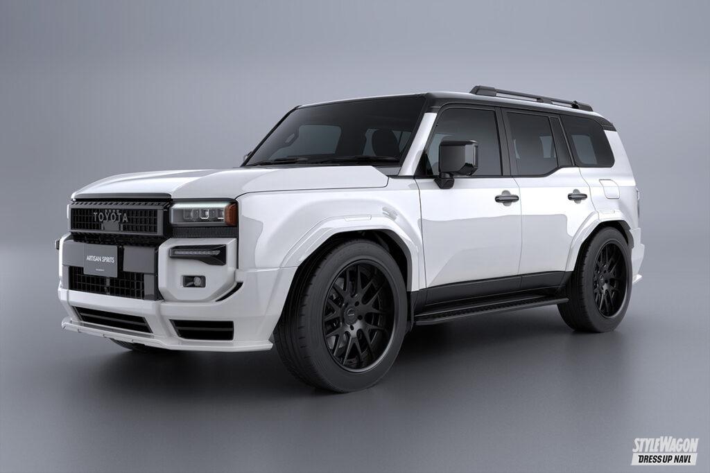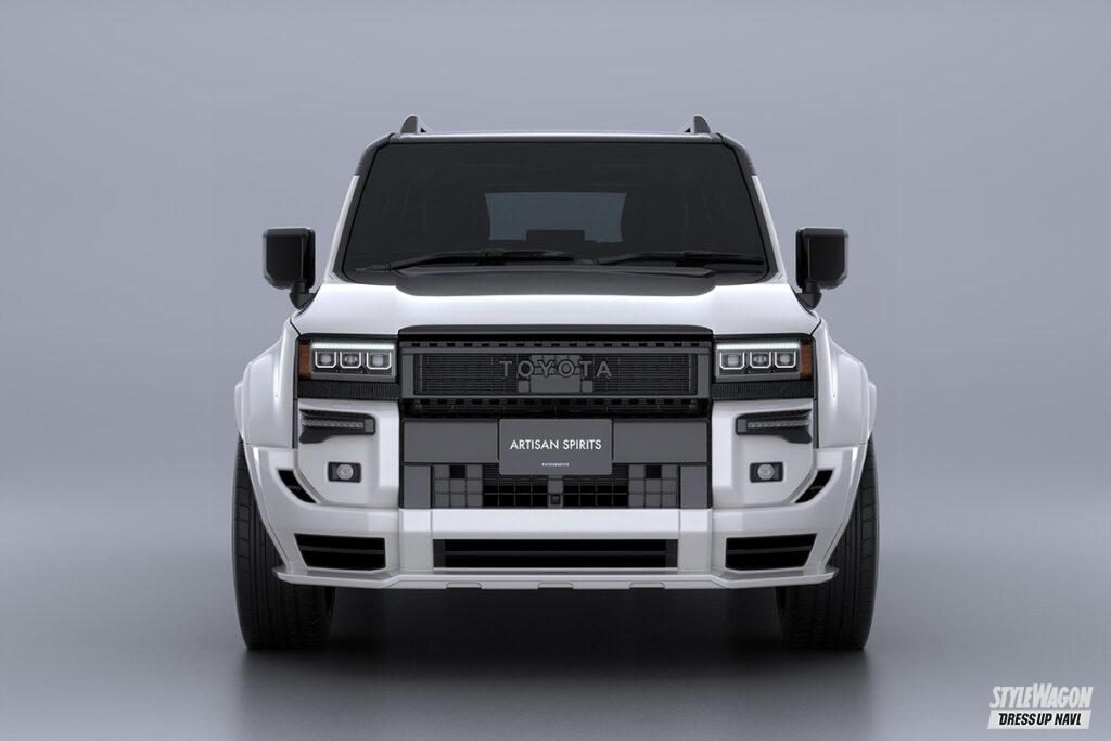 停まっていても走る姿をイメージできる〝アクティビティ&デザイン〟をコンセプトに掲げるアーティシャンスピリッツが、ランクル250を開発中との情報をキャッチ! 入手したCGを見るとスッキリとしたスタイルとの印象を受ける。純正ラインを活かしつつ、「違う!」と感じられるスタイルが追求されているようで、派手さではなく、〝整った違和感〟を提案するというワケだ。アイテムは前後スポイラーのほか、フェンダー、リアのゲート&ルーフスポイラーの5点を想定。シンプル&スタイリッシュなシルエットながら、フェンダーは片側30㎜ワイドとナカナカの迫力。〝整った違和感〟をもっとも象徴するパーツになりそうだ。