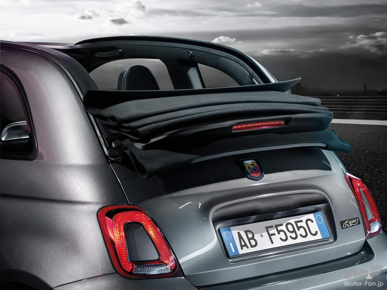 「F595C」はF595をベースに、ブラックの電動開閉式ソフトトップを搭載したカブリオレモデル。ソフトトップを開けると、レコードモンツァのハイパフォーマンスエキゾーストシステムが奏でるエンジンサウンドをダイレクトに聞きながらドライブを楽しむことができ、ソフトトップを閉めるとBeatsオーディオから流れるプレミアムなサウンドを存分に楽しめる。
