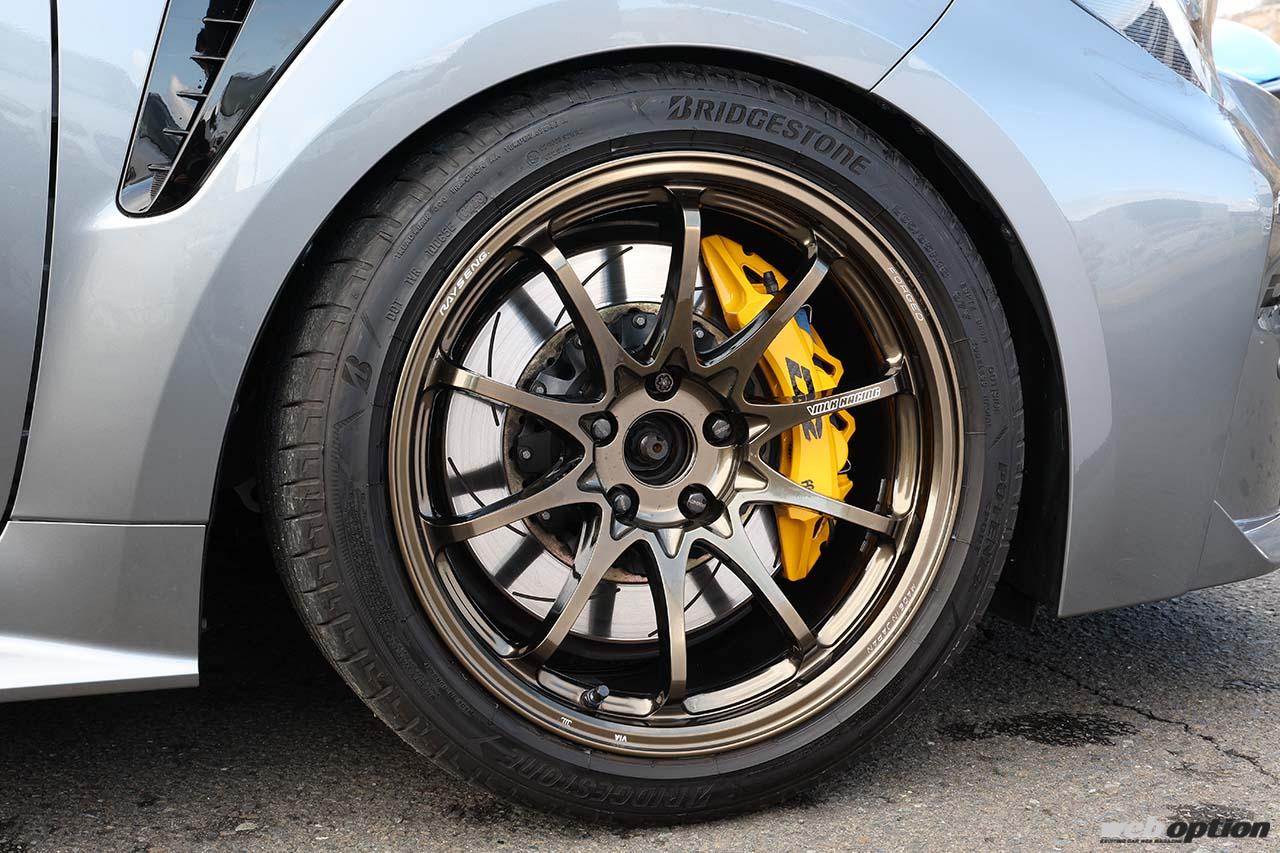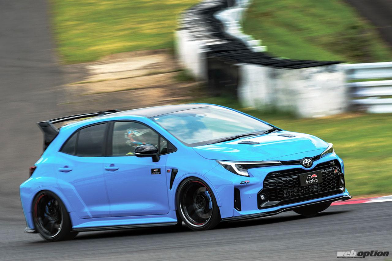 具体的なスプリングレートは、フロントが7.2kg/mmでリヤが8kg/mm。デモカーと同じ車高かつ35という超扁平タイヤにも関わらず、ストリートでは不快な突き上げのない上質な乗り心地を実現する。テストを繰り返して導き出したレートは、サーキットでもGRカローラの潜在能力を引き出す。ほどよくロールを抑えブレーキングによる荷重移動がしやすく、ビギナーでも安心してスポーツ走行を楽しめる懐の深さが魅力だ。