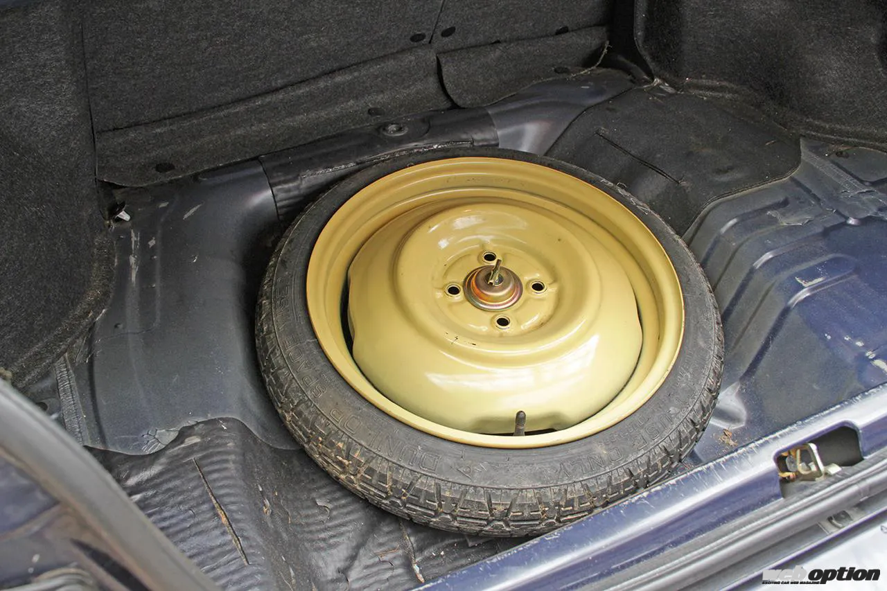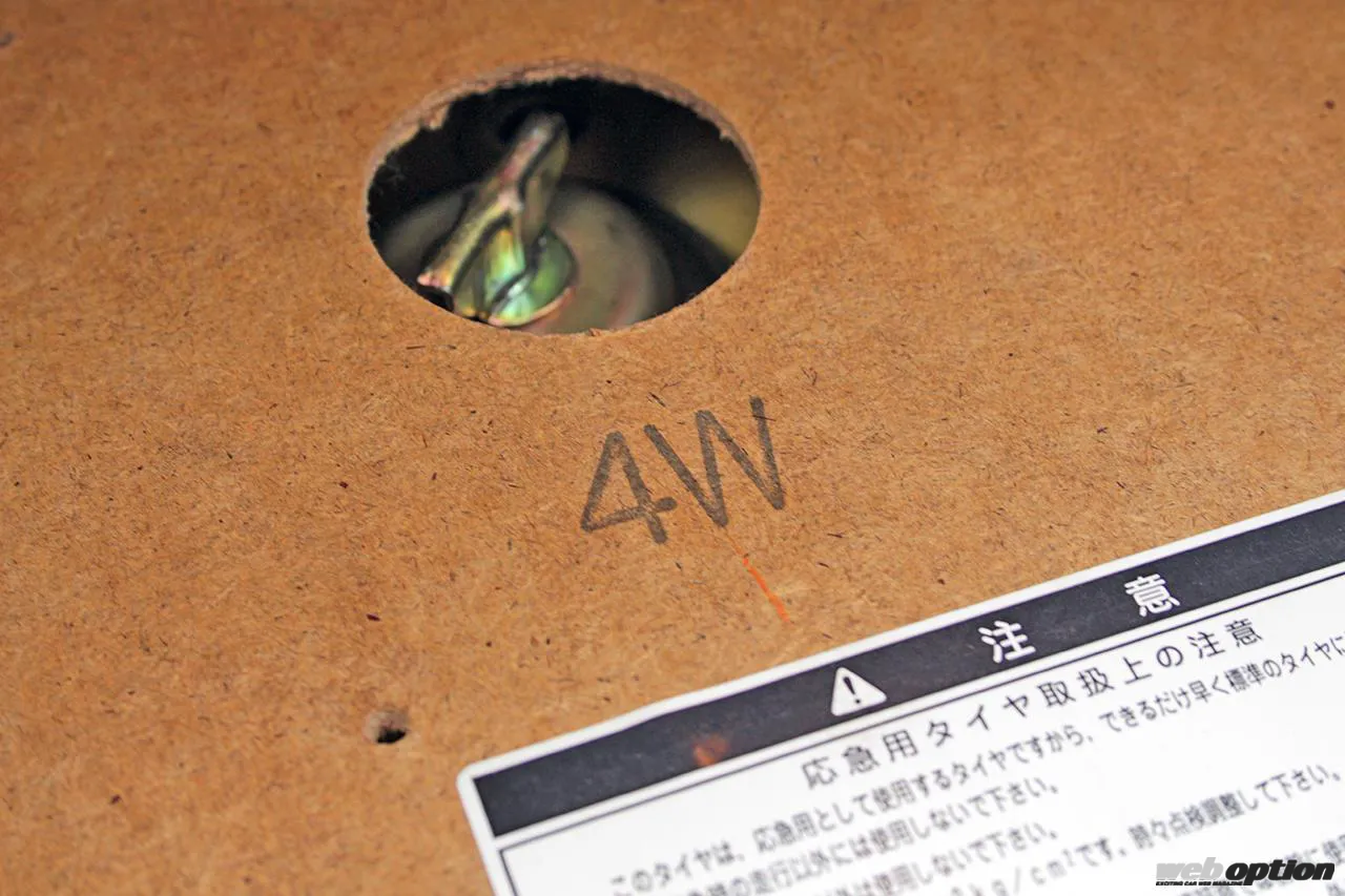4WD車はリヤにもデフが存在する関係からフロア形状が異なり、テンパータイヤもわずかに後ろに傾けられて収納されている…というのは今回初めて知った事実。