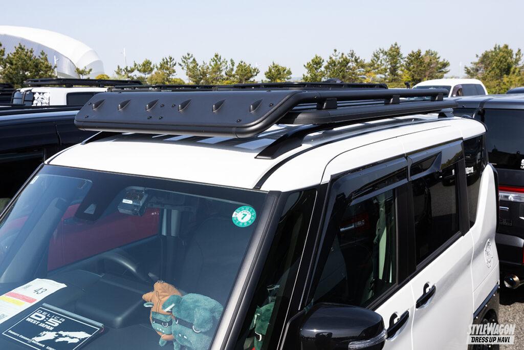 WHEEL●レイズ チームデイトナ(15×5.0J+45) TIRE●トーヨータイヤ・オープンカントリーR/T(165/60)EXTERIOR●F/ルーフキャリア/ラダー=オートフラッグス、グリル/リアウイングDIYカーボンシート、バイザー=コルトスピード 他