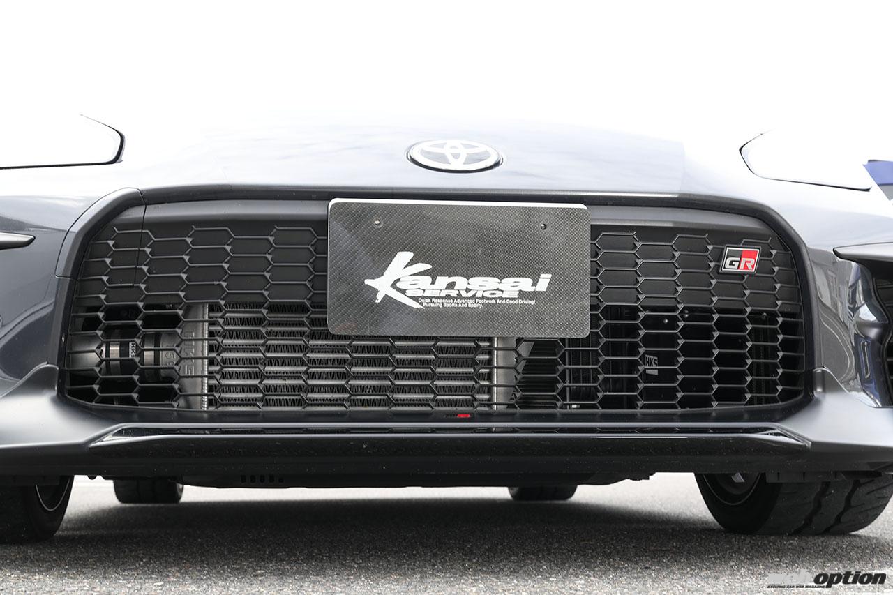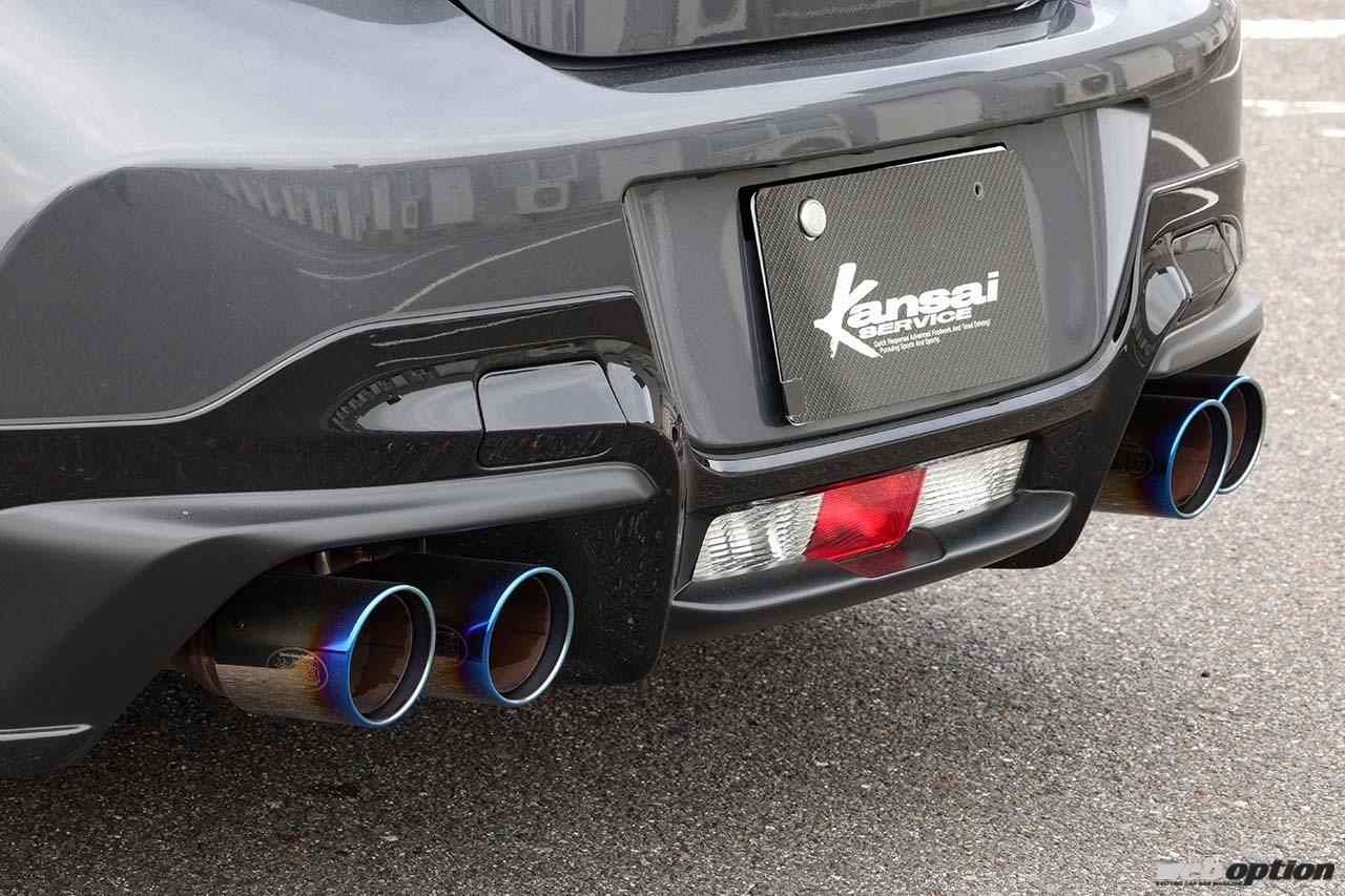 ボリュームのあるGRリヤバンパーに、左右W出しの柿本レーシング・クラスKRをチョイス。カンサイサービスのECUTEKで制御しているが、冷間始動時での音量を抑制したマネージメントが図られている。