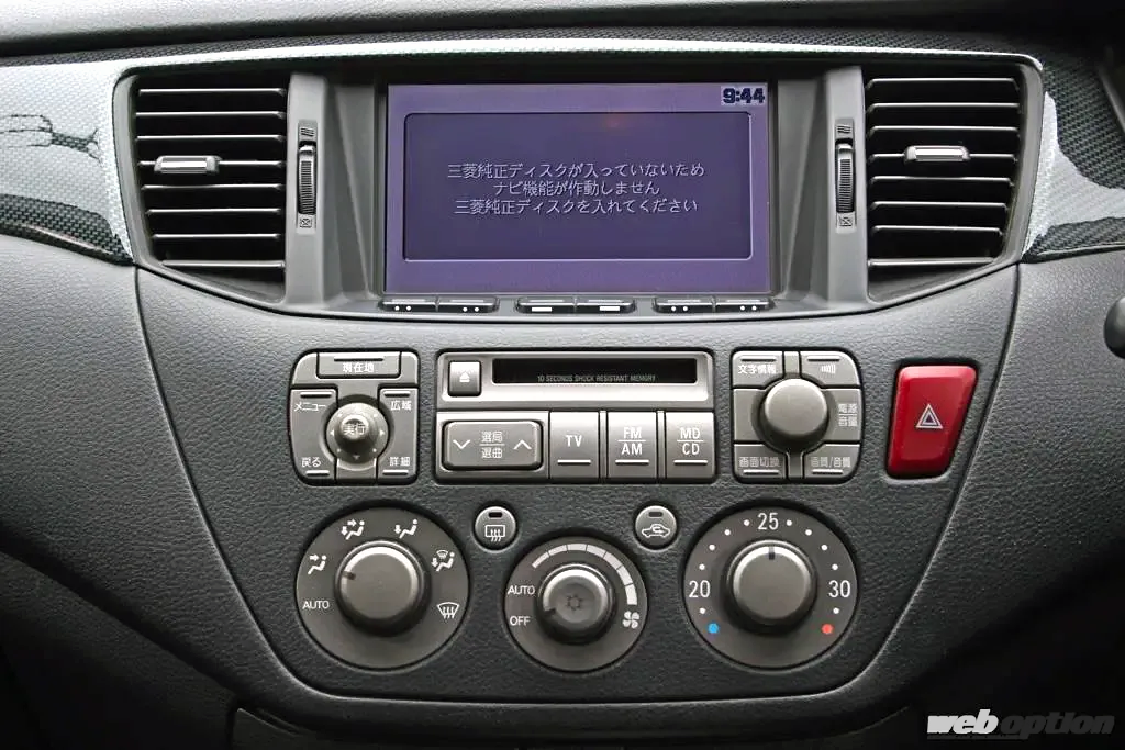 Tツーリング/ラリーアートエディションが追加されたタイミングで、MMCS(三菱マルチコミュニケーションシステム)のナビゲーションがCD式からDVD式に変更。オーディオもカセットデッキからMDデッキに改められた…ということに時代を感じずにはいられない。