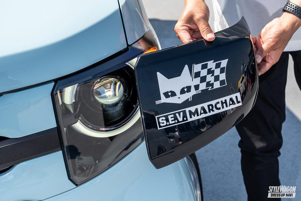 「元々旧車が欲しかったんですけどなかなか買えないので、現行のクルマをベースに街道レーサー風を意識して仕上げました。内装にも、ケンウッドのロゴが光るスピーカーやチンチラのダッシュマットなど、当時をイメージしたアイテムを多数取り入れています」。