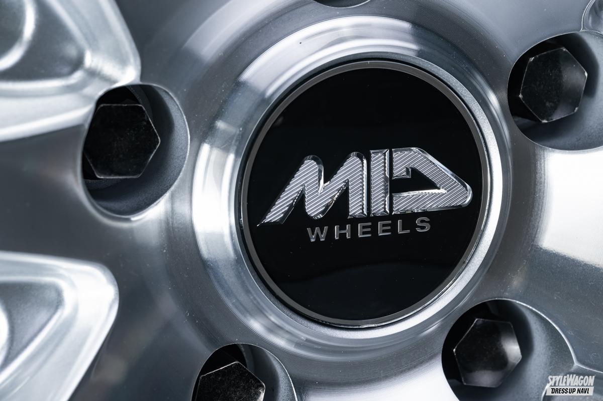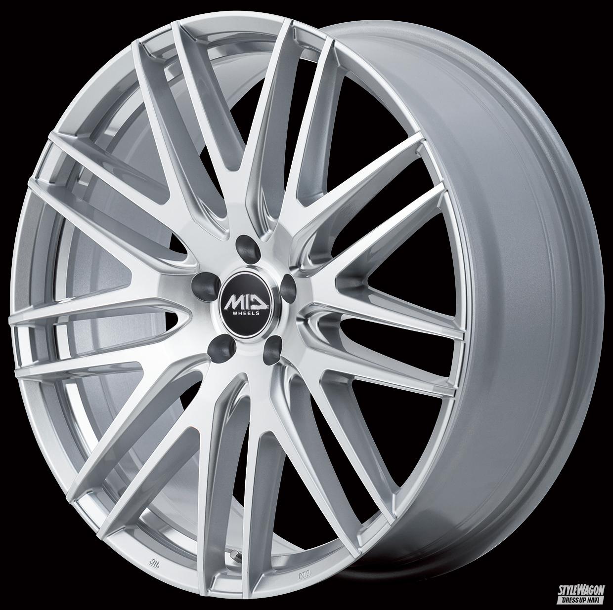 年々大型化が進む現代のプレミアムカーは、当然ながらそのホイールも大型化の一途を辿っている。その中でもさらなる大口径感を手に入れることはできないか、とMIDエクスクルーシブが導き出したひとつの答えがこの029F。クロススポークの交点をできる限りセンターへと近付け、スポークを最大限大きく、長く見せることにこだわったその造形は、現代のボリューム豊かなミニバンやSUVなどの足元でも引けを取らない存在感を放ち、バツグンに映えてくれるから注目だ。