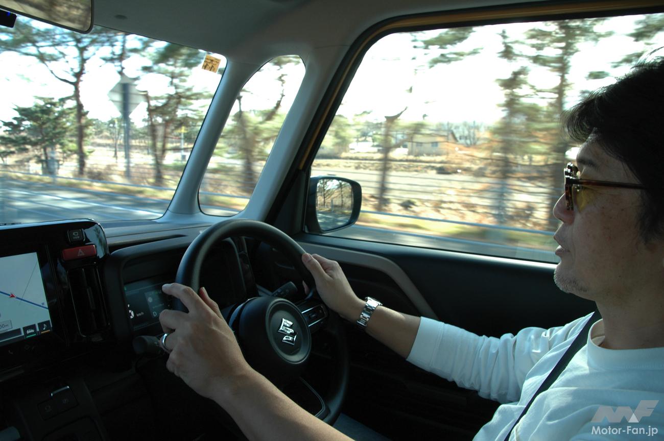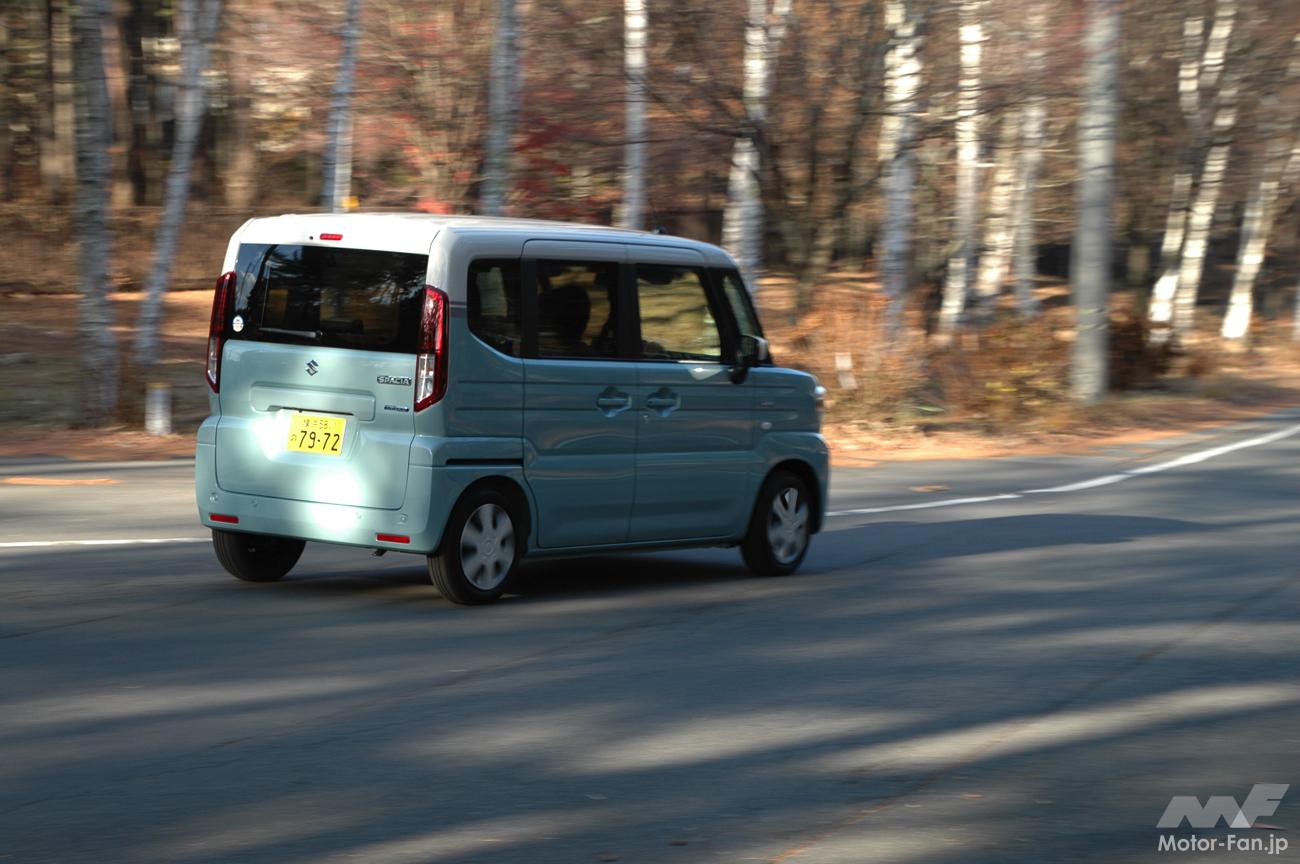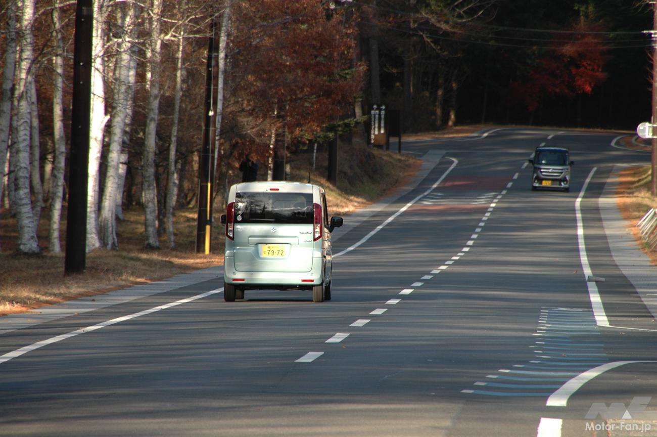 ご存じの通り軽自動車のディメンジョンはサスペンションストロークに余裕が少なく、コストを考えればダンパー容量も増やしづらい。その中でスペーシアは今回、走安性を高める方向性を選んだのだろう。この点は、先代から確実に進化している。