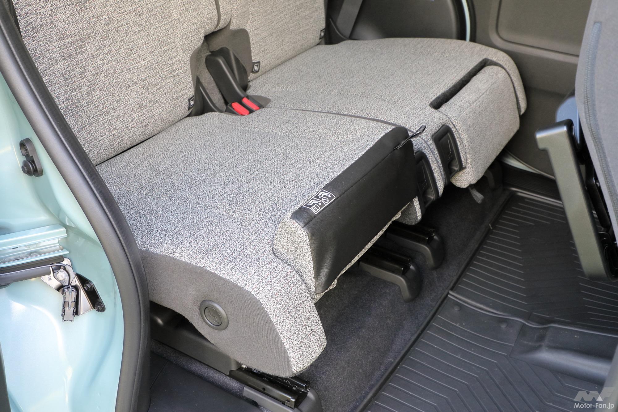 ただ実際にこれを使ってみた印象は、ちょっと期待とは違うものだった。ご存じの通りスペーシアのレッグスペースは広いから、オットマンがあればそのくつろぎ効果はかなり高まるはず。しかし肝心な使用感はフラップ部分のクッションが肉薄で、ふくらはぎ部分に硬さを感じた。クルマが停車しているときならまだしも、荒れた路面を走っているときなどはその乗り心地も含めて、あまり快適とは思えなかった。