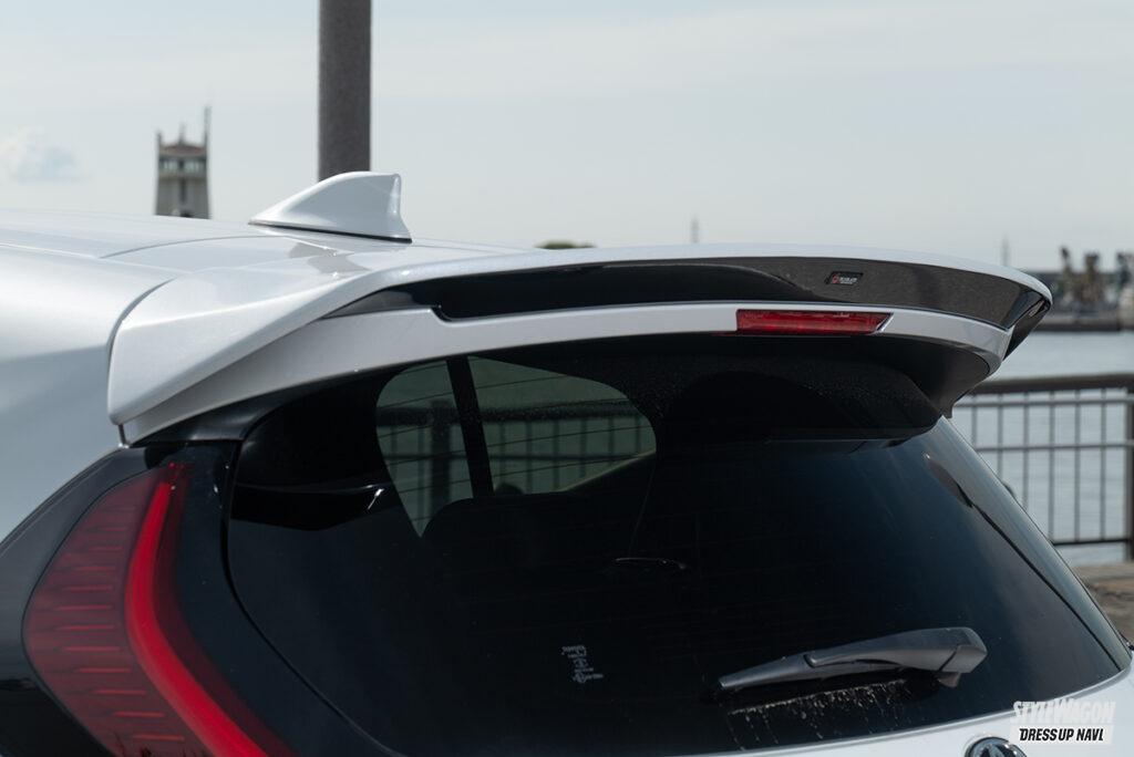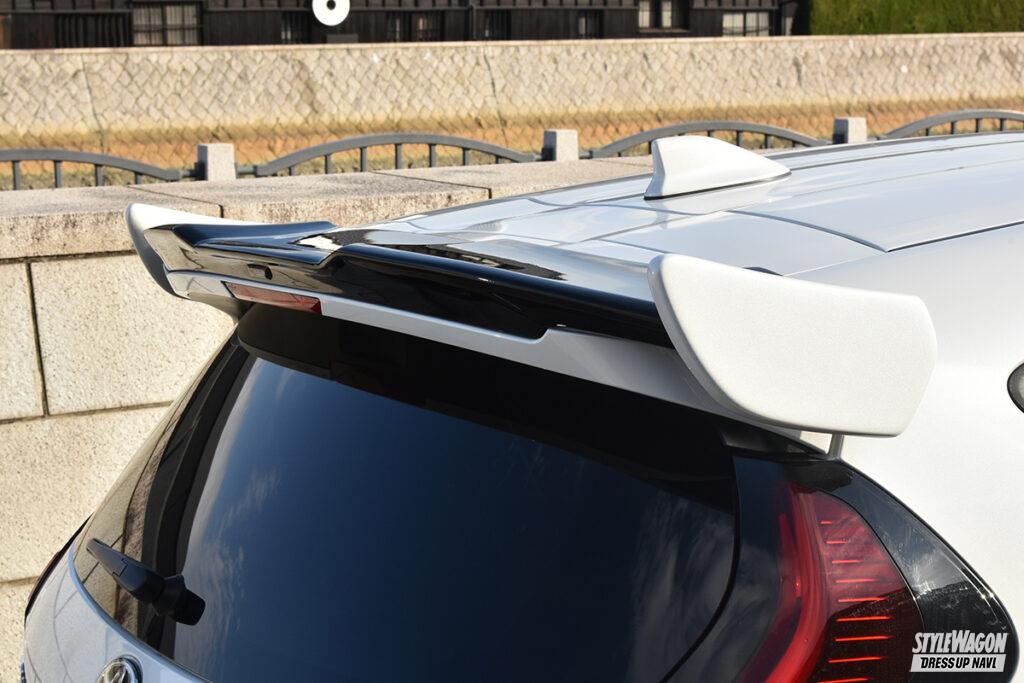 サイドをカナード風に立ち上げたフロントリップとシャープな目元を作り出すアイライン、翼端板を備えた迫力のリアウイングは、昨年に先行リリースされたスタイルの核となるパーツ。今回はそこにサイドフラップとリアフラップ、ウイングのバージョン2が追加となって、トータリティがより高められている。