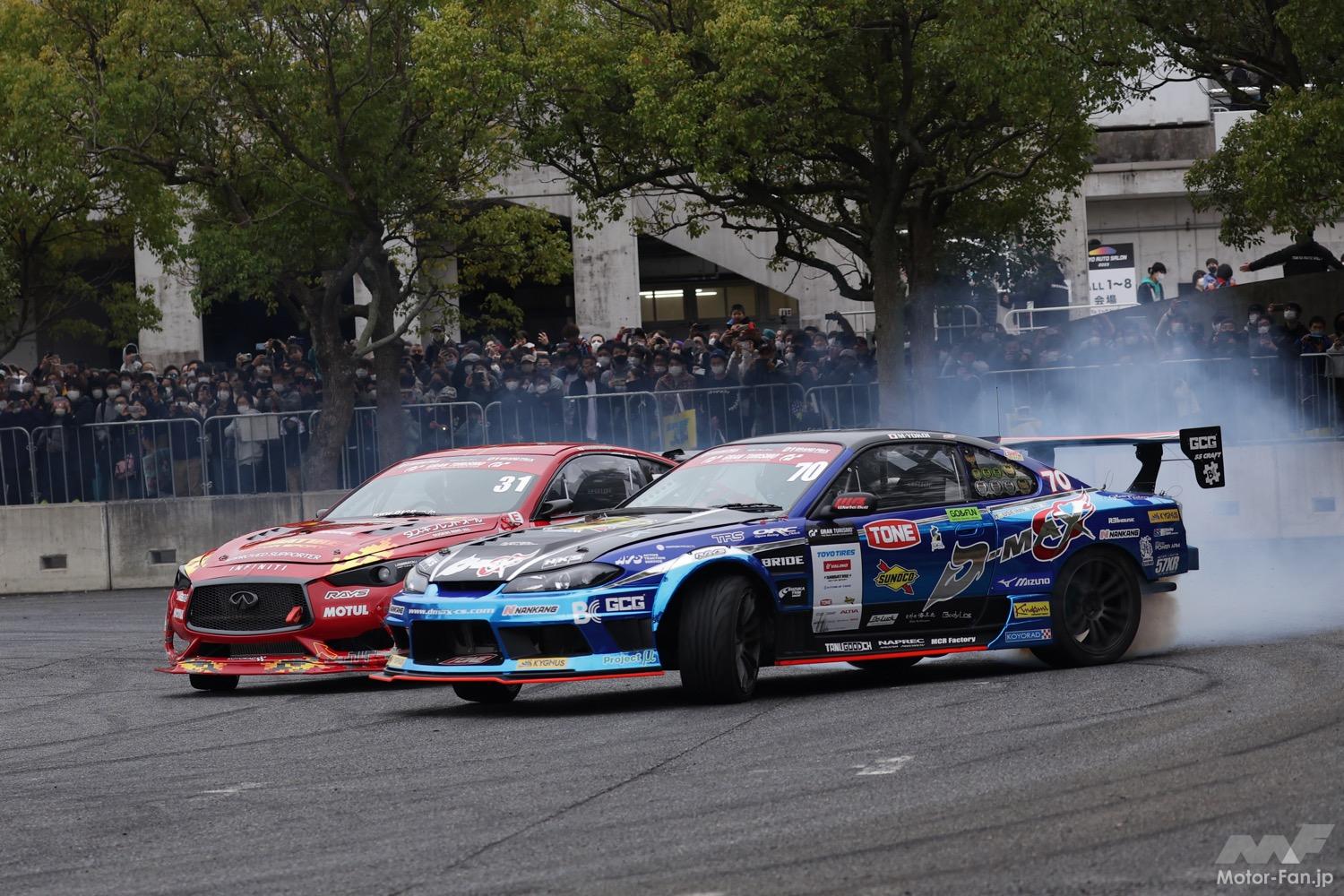 その他に、ピストン西沢氏プロデュースのキッズ助手席体験「WILD DRIVE KIDS BY MAZDA×BRIDGESTONE」や、FR名手2人の因縁のバトル「AE86 BEV vs AE86スーパーマメ号」など見どころ多数となっている。 そして、煙モクモク&客席至近距離の大迫力のドリフトが毎回人気の「D1GP Kick Off Drift」も実施予定だ。