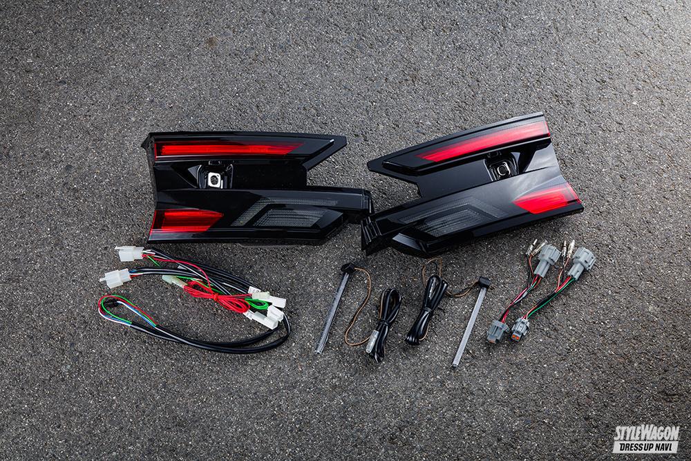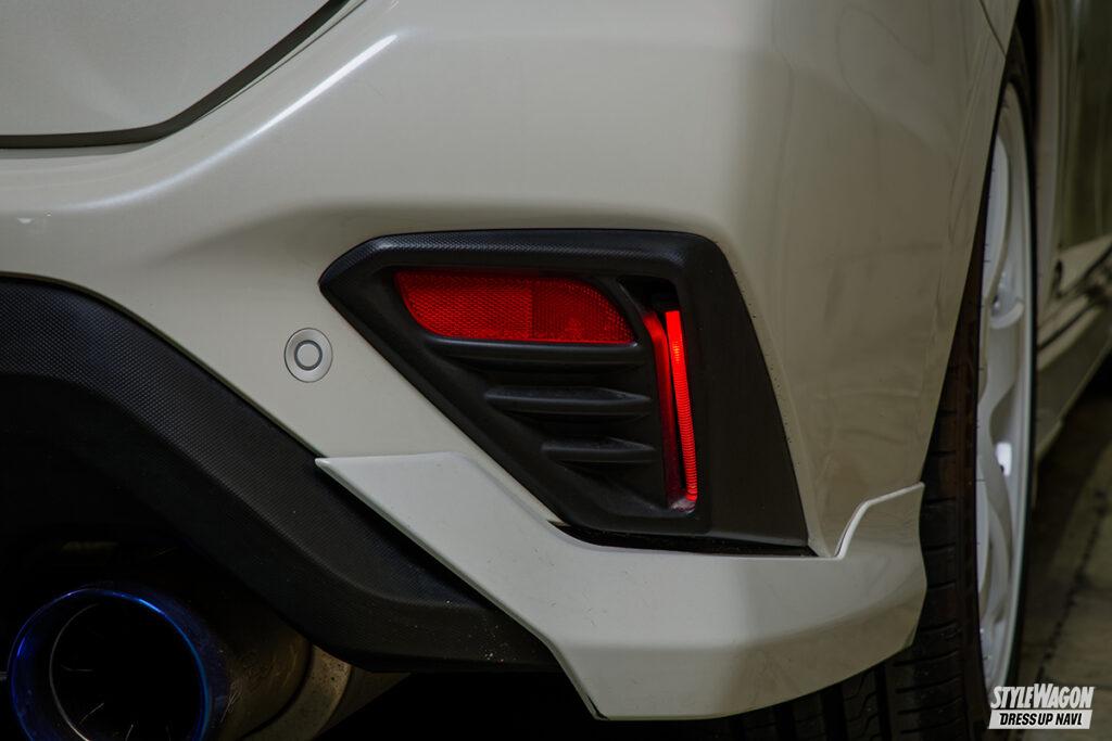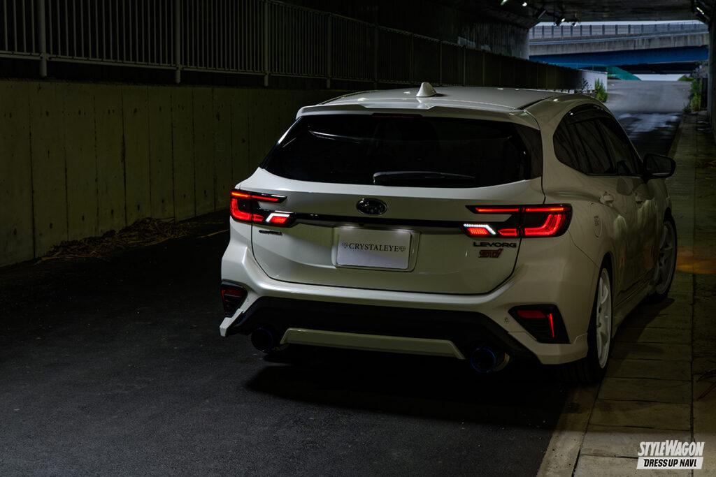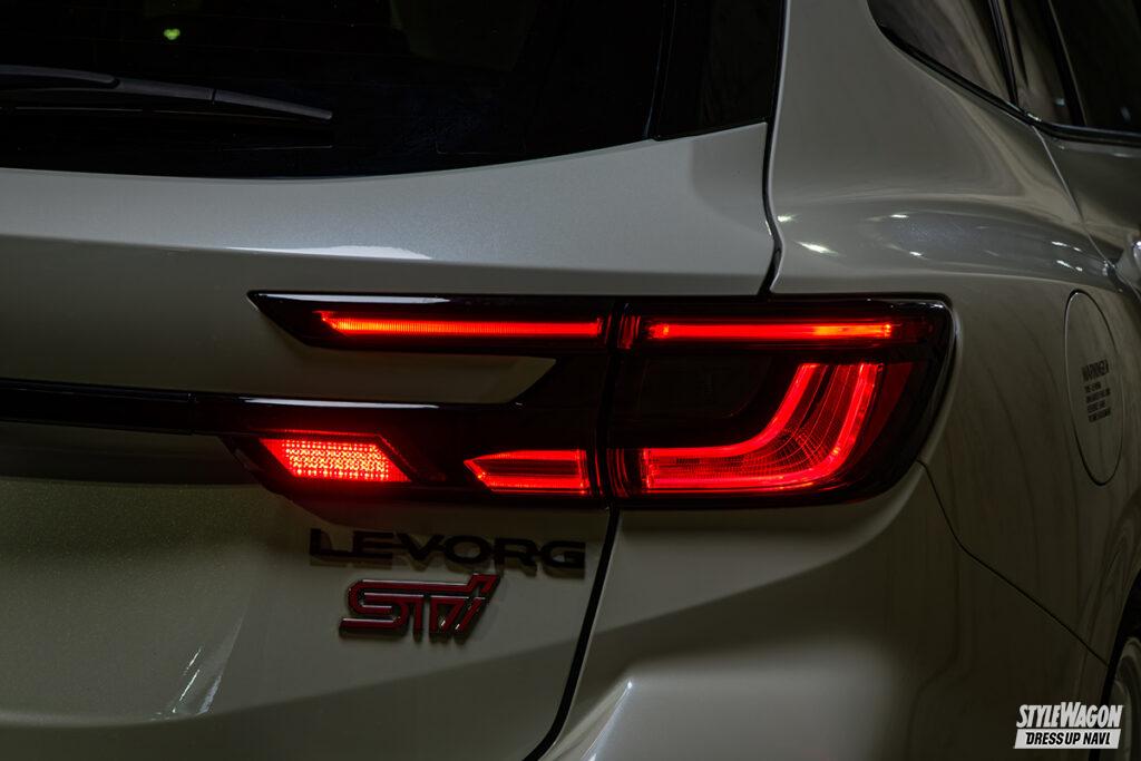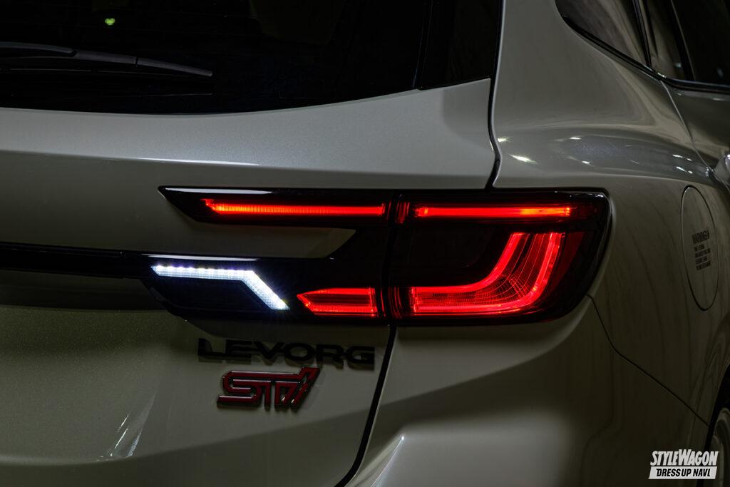 現行レヴォーグ(VN5·VNH)の純正テールランプは、ボディ外側とバックドア側の2ピース構造だが、メインで点灯するのはボディ外側部分(スモール、ウインカー、ブレーキ)。バックドア側のユニットは助手席側下部にバックランプ、運転席側下部にリアフォグランプが装備されている。またその部分のみオーバル形状の抜き窓のようなデザインが採用されている。