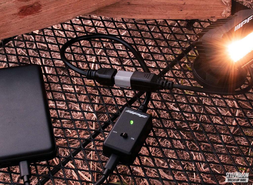 夜間の作業やキャンプ&アウトドアシーンで活躍するIPFのLEDワーキングライト。車両のバッテリーと接続し、専用スイッチなどを設置してライトをON/OFFさせるなど接続方法は様々だが、バッテリーから電源をとる場合、エンジンOFFで使用するとバッテリー残量がどうしても気になってしまう。そんな悩みを解決してくれるのが「モバイルバッテリーコンバータ」。